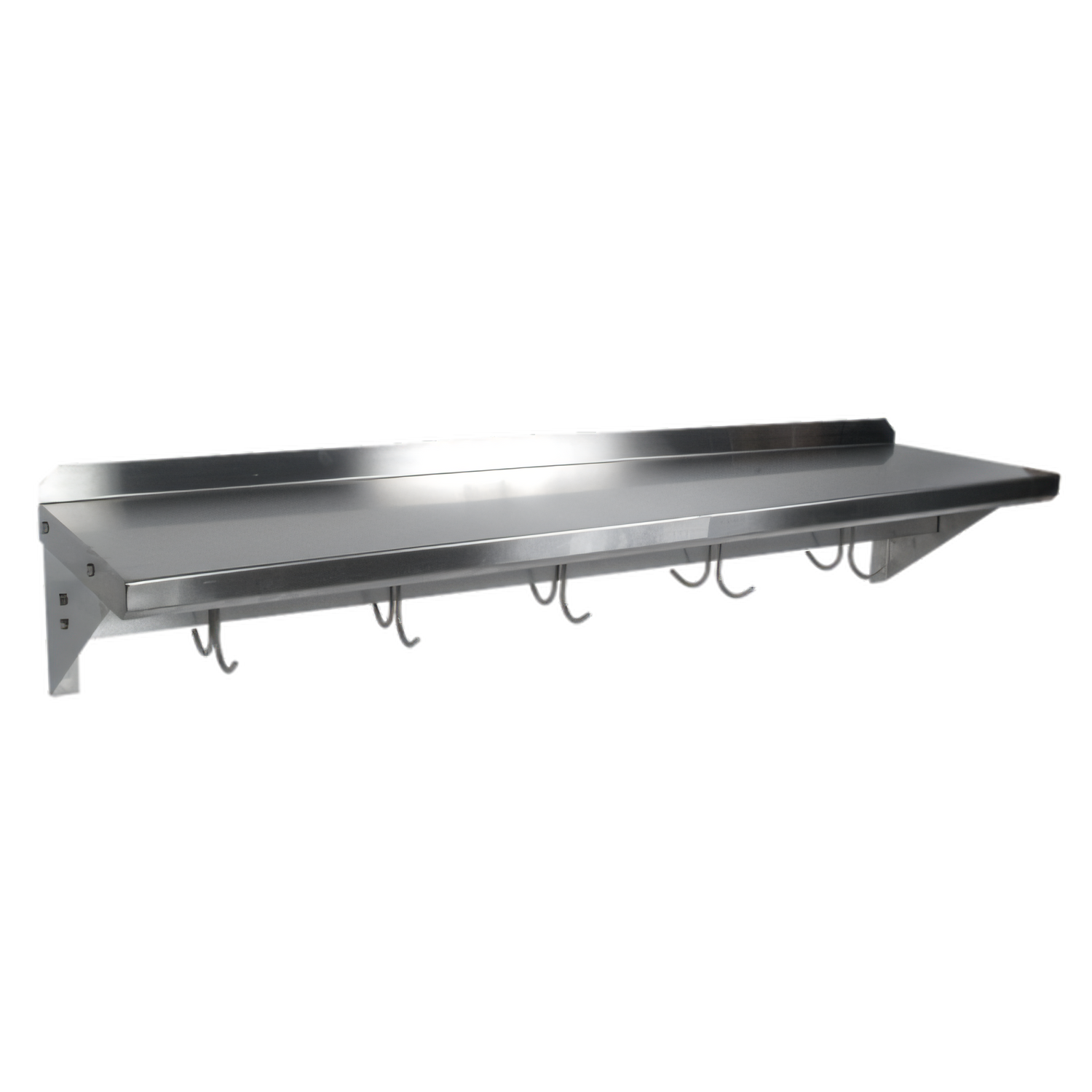 Cucina Mensola Shelf, wall-mount, 18/300 stainless steel, 36"W x 12"D, polished welded joints, stainless steel utensil bar & (4) stainless steel hooks