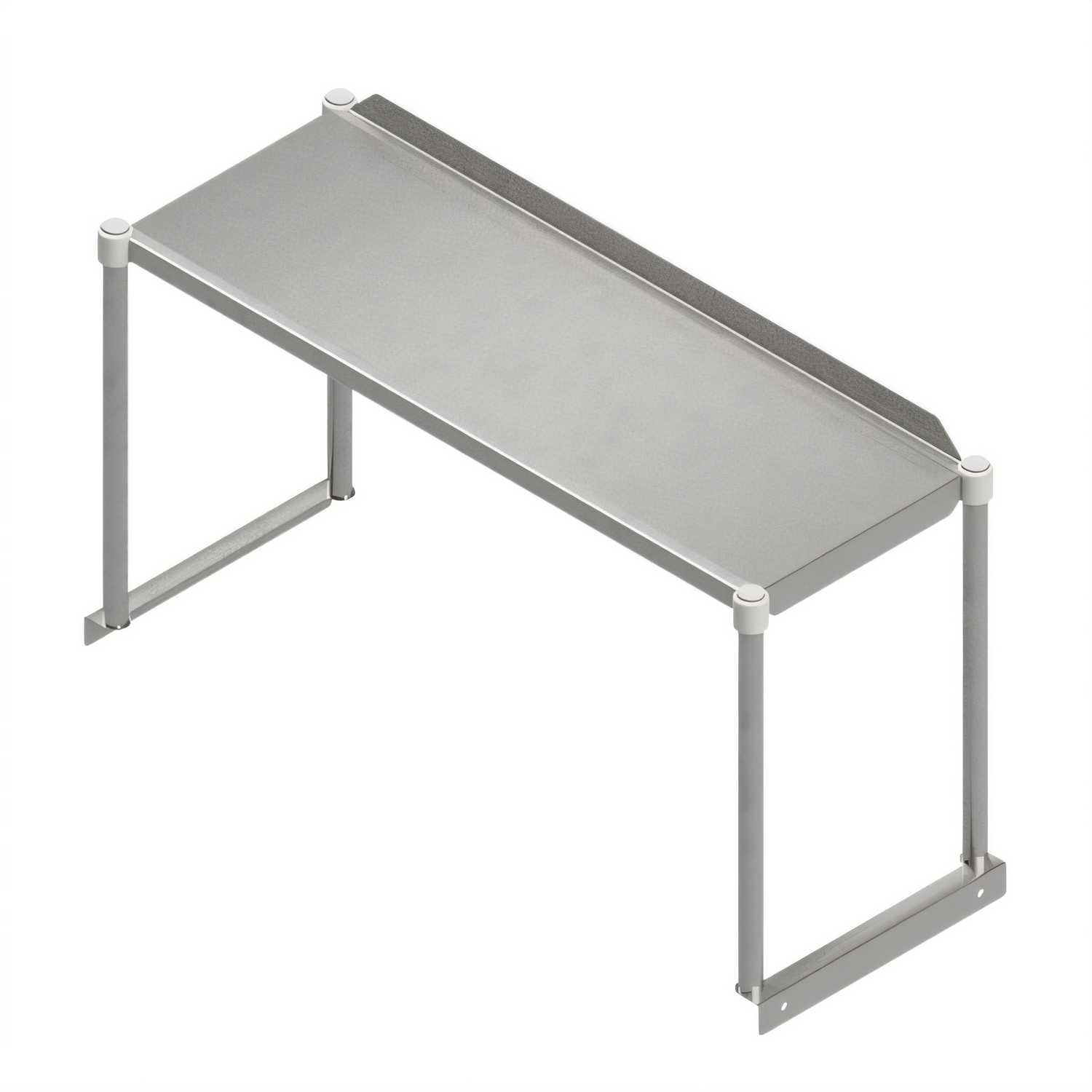 Overshelf, single, 48"W x 18"D, 16/300 stainless steel with 1-1/2" upturn on back, mounted 18" above table top, 1" stainless steel post, KD, NSF