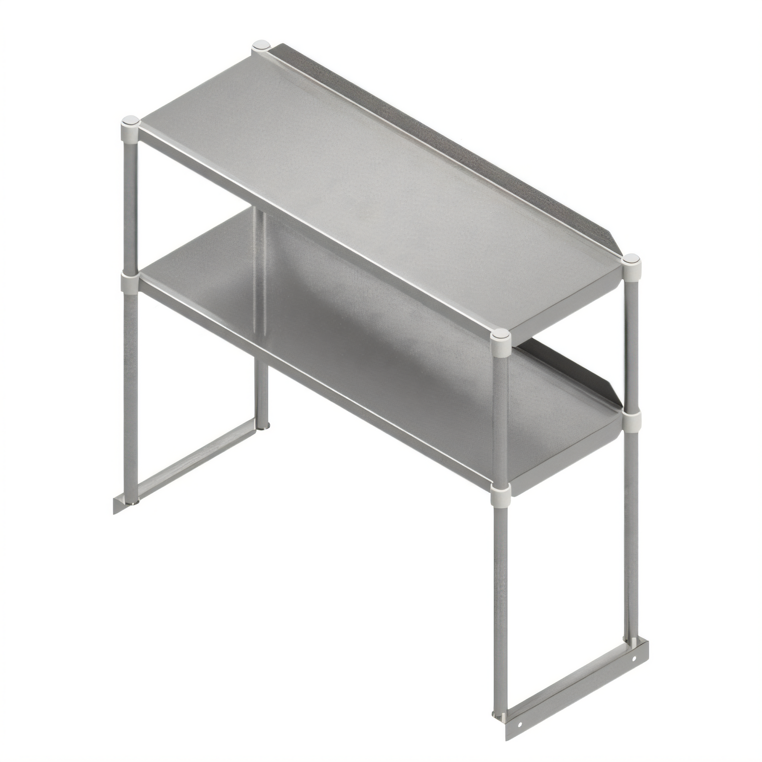 Overshelf, double, 72"W x 12"D, 16/300 stainless steel with 1-1/2" upturn on back, mounted 18" above table top, 12" between shelves, 1" stainless steel post, KD, NSF