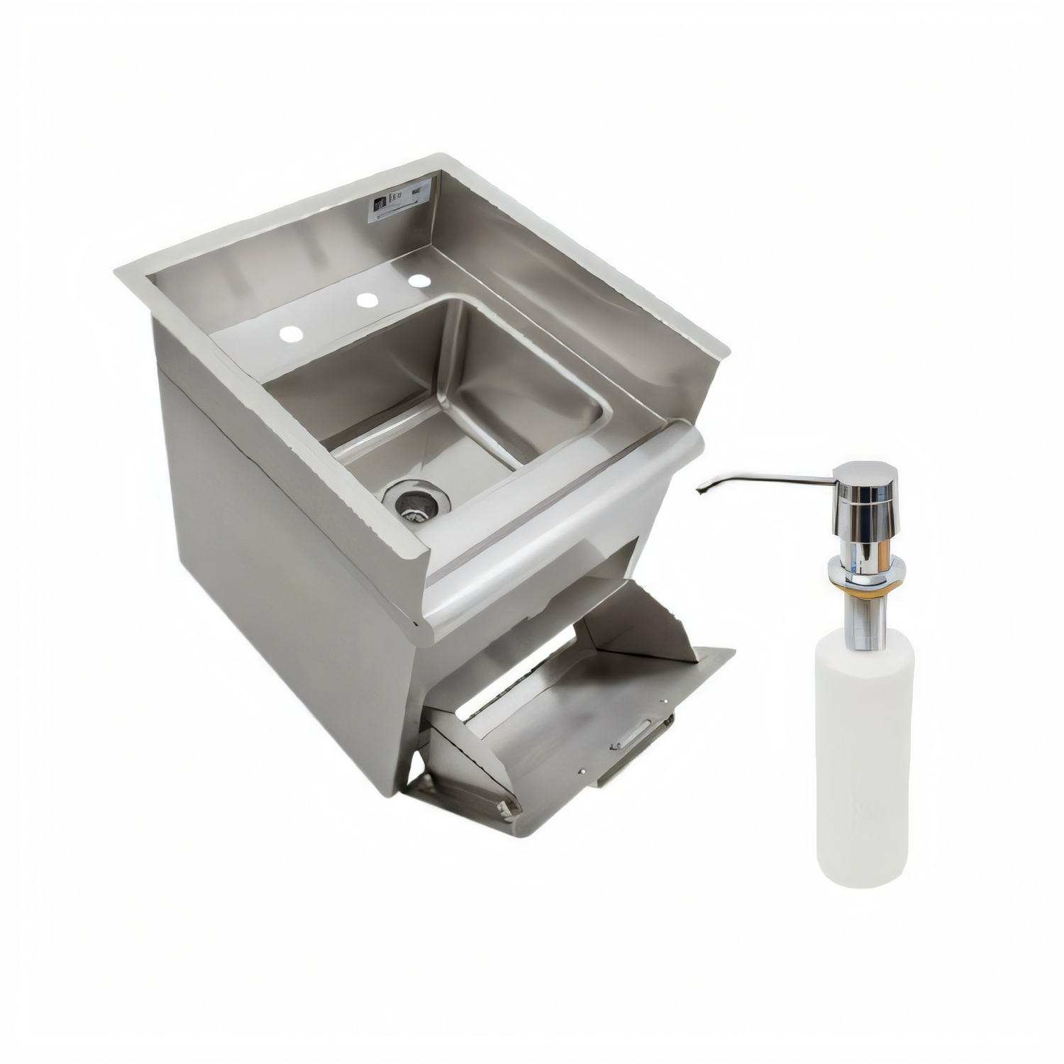 Compact stainless-steel hand-washing station with built-in towel & soap dispensersAdd a dedicated, code-friendly hand-wash station to prep lines, concession counters, food trucks and anywhere space is at a premium. The John Boos Pro-Bowl Drop-In Sink arrives ready to install, complete with basket drain, twin side splashes and an integrated paper-towel/soap solution that keeps hands clean and counters uncluttered.
