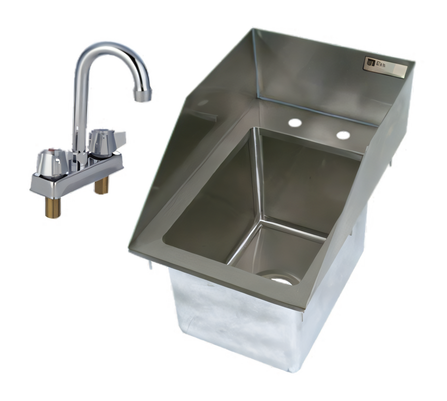 Pro-Bowl Drop-In Sink, 1-compartment, 12-5/8"W x 18-1/2"D x 16"H overall size, (1) 10"W x 14" front-to-back x 10"deep bowl, deck mount faucet holes with 4" centers, 3-1/2" drain opening with basket drain, stainless steel construction construction, with left & right side splashes, includes economy gooseneck faucet, 3-1/2" spout, NSF, CSA-Sanitation