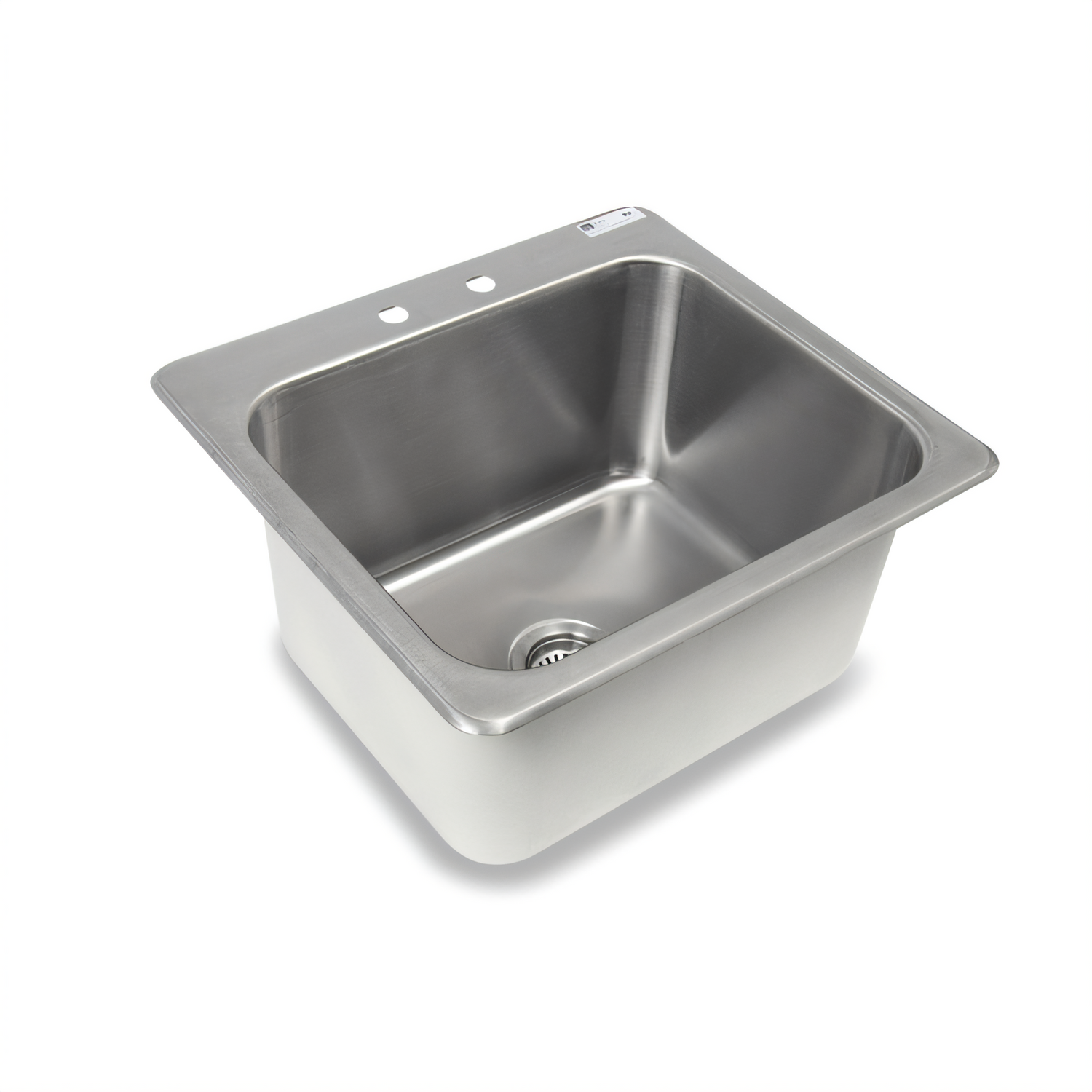 Pro-Bowl Drop-In Sink, 1-compartment, 23"W x 21"D x 12"H overall size, (1) 20"W x 16" front-to-back x 12" deep bowl, deck mount faucet holes with 4" centers, 3-1/2" drain opening with basket drain, stainless steel construction, (faucet not included), NSF