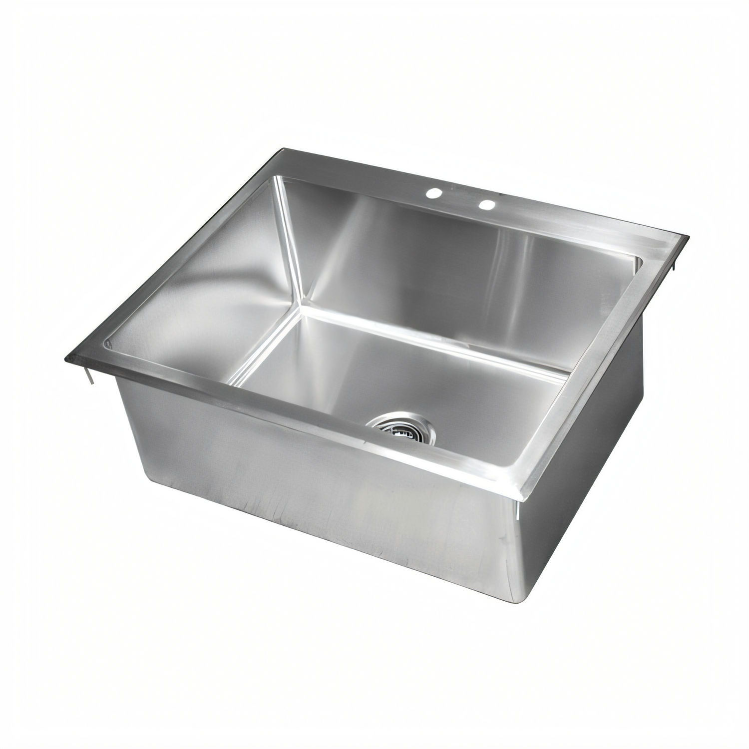 Pro-Bowl Drop-In Sink, 1-compartment, 31-5/8"W x 25-5/8"D x 12"H overall size, (1) 28"W x 20" front-to-back x 12" deep bowl, deck mount faucet holes with 4" centers, 3-1/2" drain opening with basket drain, stainless steel construction, (faucet not included), NSF (Available in Effingham)