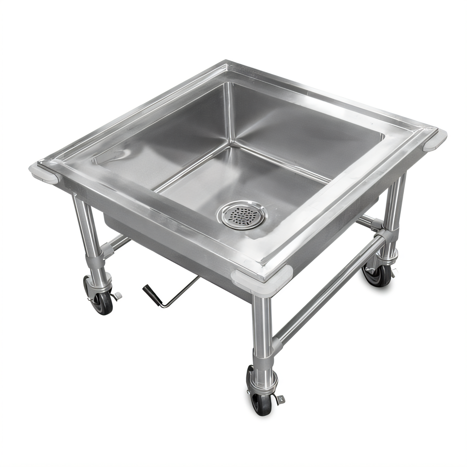 Soak Sink, mobile, 27"W x 27"D x 21-3/4"H overall size, (1) 20"W x 20"W x 8" deep compartment, 3-1/2" die-stamped drain opening, twist lever waste, no drip edge, 16/300 stainless steel construction, 5" swivel casters with locks