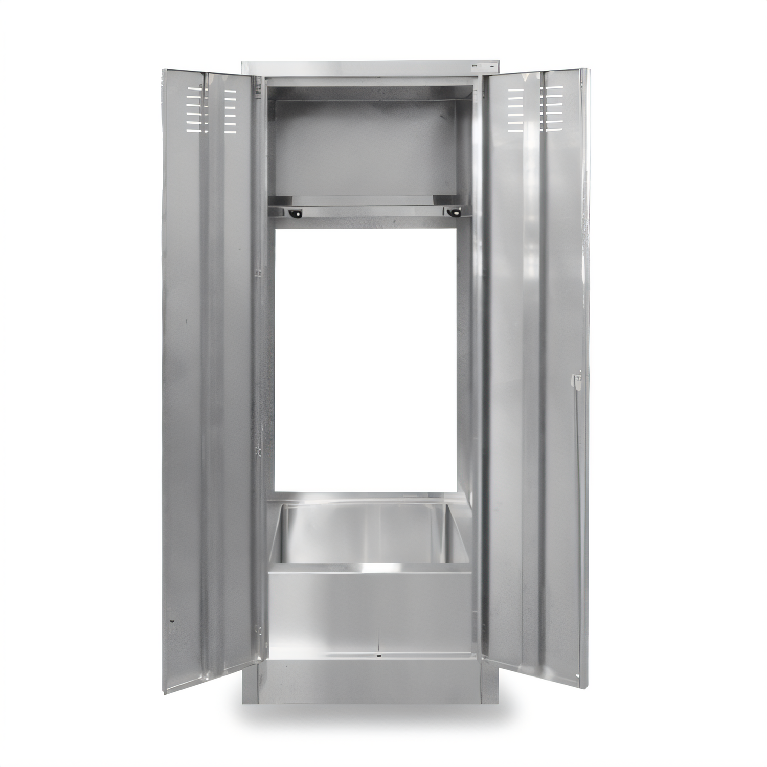 - (2) lockable louvered swing doors with tamper-proof hardware