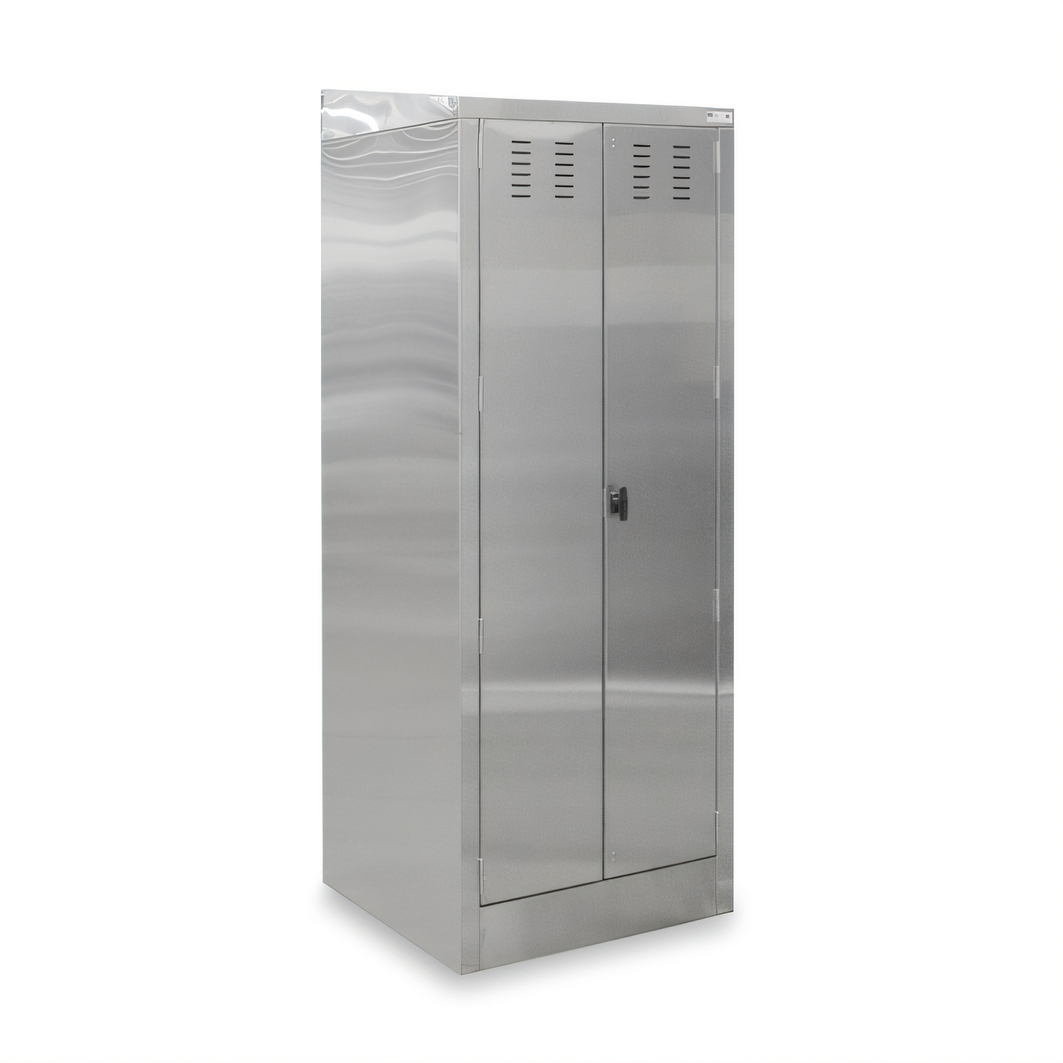 25" W x 22-1/2" D x 84" H – Oversized 20" × 16" × 12" Mop Sink – NSF ListedConsolidate your mop sink, chemical storage and janitorial tools in one tamper-proof, stainless-steel enclosure that is built to outlast daily commercial use. The PBJC-222584 arrives ready to connect to your existing plumbing and keeps everything you need behind two lockable louvered doors.