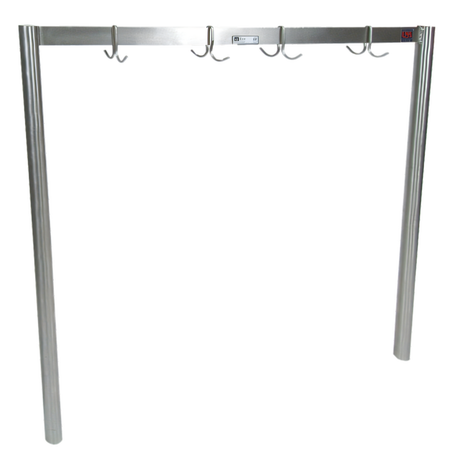 Pot Rack, table mount, single bar, 79-1/4"W x 1-5/8"D x 48"H overall size, 3/16" x 2" stainless steel flat bar, includes (7) stainless steel double hooks, 16/300 stainless steel construction, NSF, CSA-Sanitation (requires factory installed bracket to JBC table)