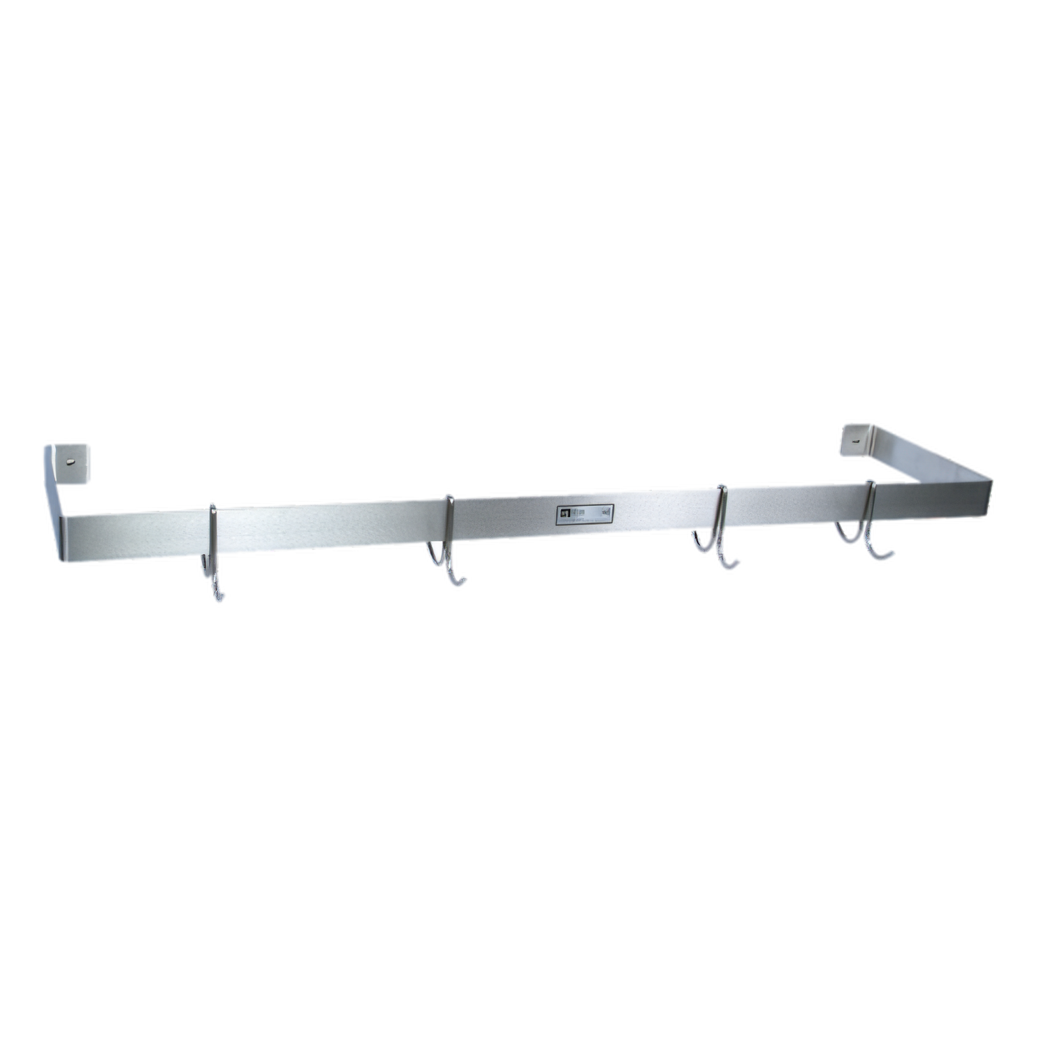 Pot Rack, wall mount, single bar, 36"W x 12"D x 2"H overall size, 3/16" x 2" stainless steel flat bar, includes (3) stainless steel double hooks, NSF, CSA-Sanitation
