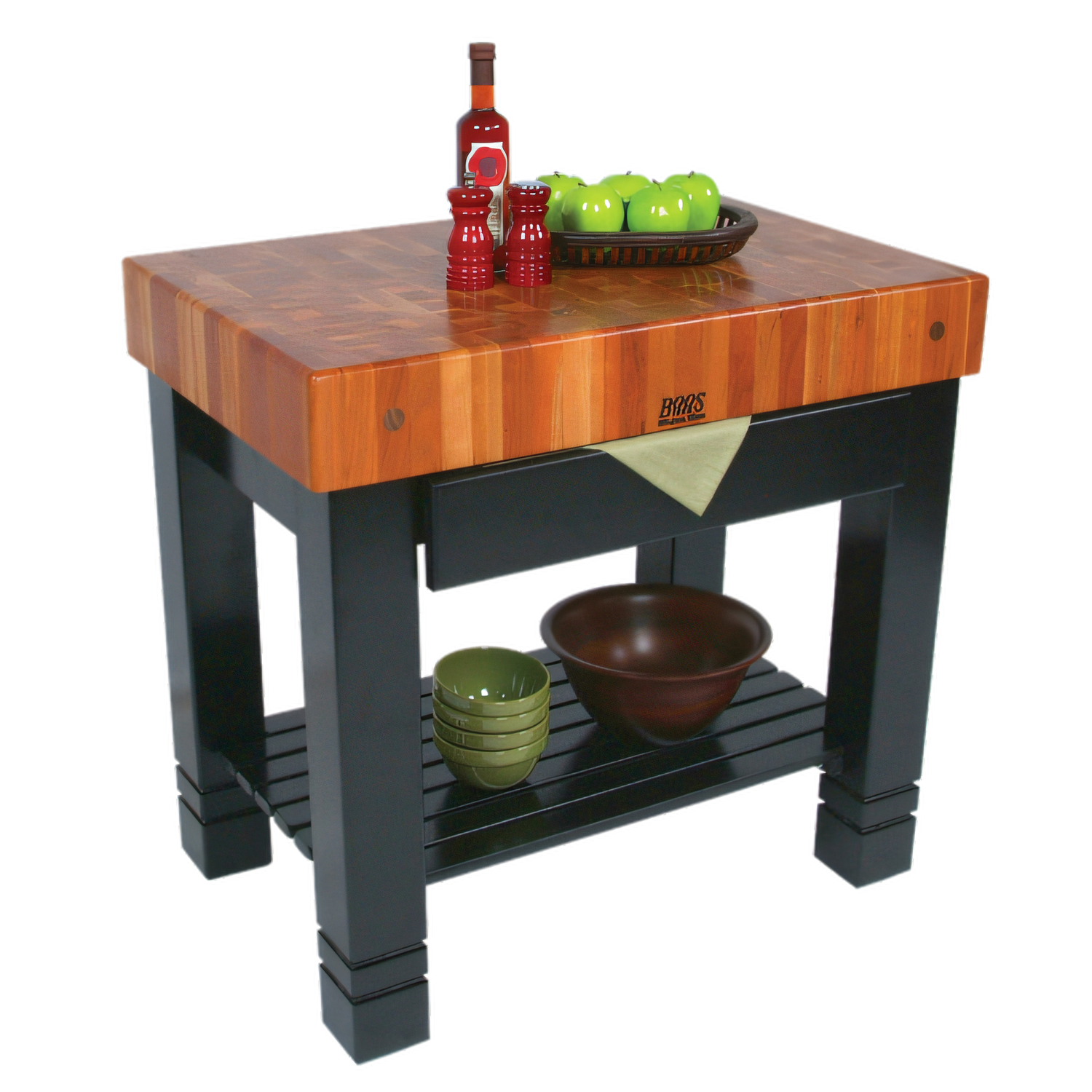 - 5" thick American Cherry end-grain butcher-block top for superior durability & knife edge preservation