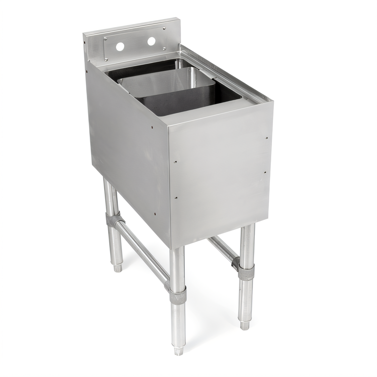 12" W x 21" D x 32-1/2" H | 18 GA Type 300 Stainless Steel | NSF CertifiedBuilt to thrive in the tightest bar, café and concession layouts, the John Boos UBDS-2112 offers a rugged 10" x 14" x 10" deep sink bowl plus a removable perforated dump basket—perfect for disposing of ice, fruit and beverage debris without clogging your drain. Heavy-gauge stainless construction, bolt-on legs and a 3" backsplash with a removable faucet plate make this compact dump sink an indispensable workhorse for any high-volume beverage station.