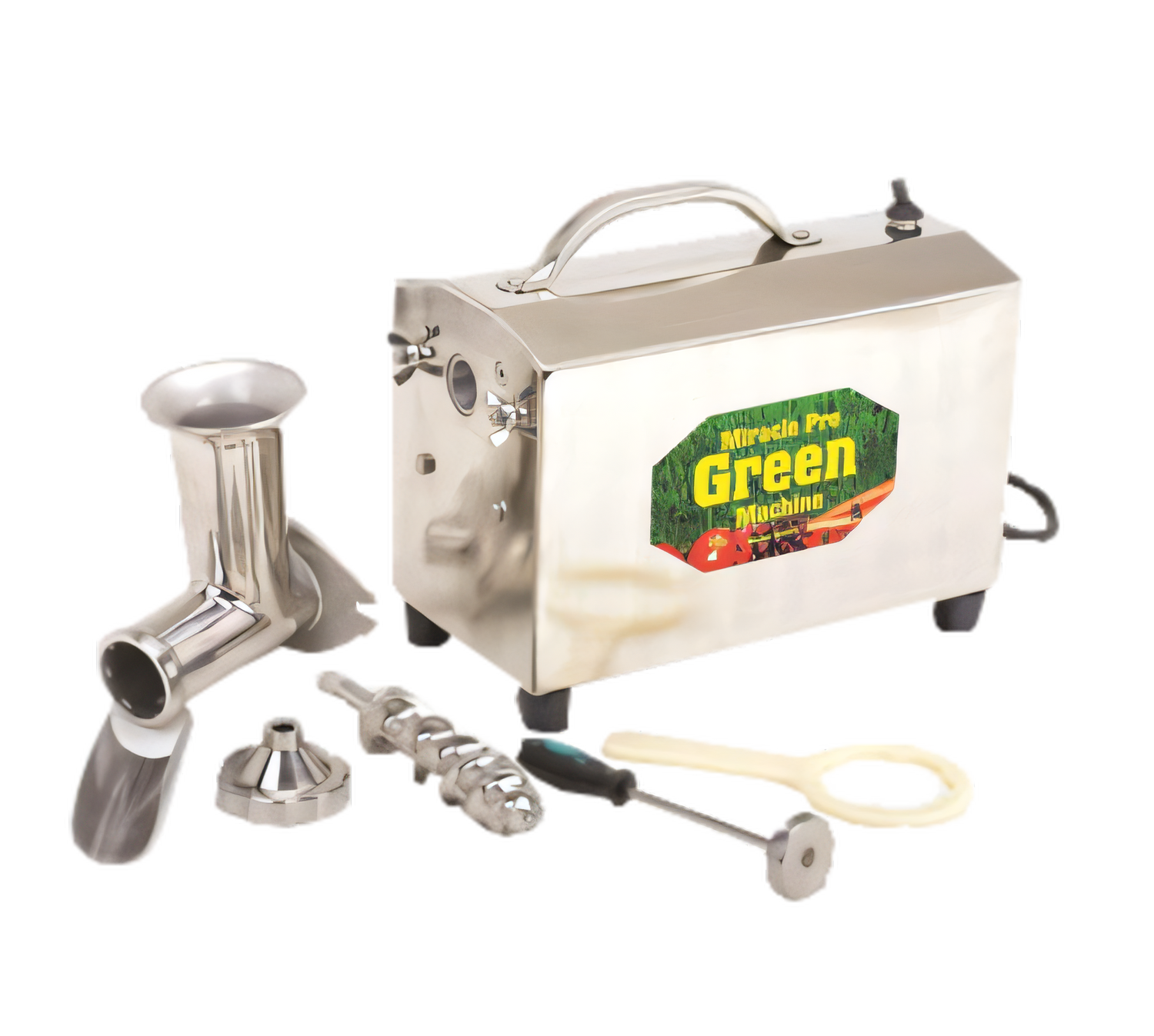 Miracle Pro Juicer, electric, 2 oz. per minute output, for wheetgrass and other leafy greens, all removable parts, dual stainless steel screen system, forward and reverse, includes pusher and recipe booklet, stainless steel auger, screen system and housing, 75 watts, 53 rpm, 110v/50/60/1-ph, NSF