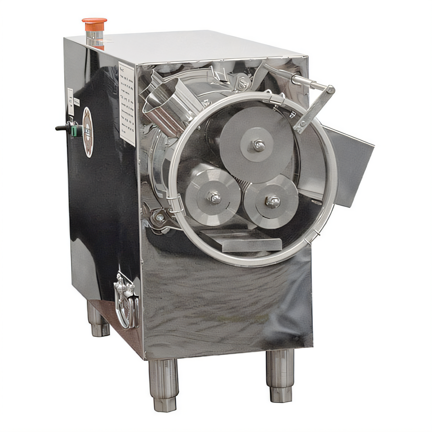 JuiceMatic Sugarcane Juicer, 2-1/4" dia. inlet hole, removable compartments, 3 stainless steel rollers, forward and reverse switch, gear driven, magnetic safety switch, overload protection, internal NSF-required seals and bottom plate, stainless steel strainer and rubber feet, 1/2 HP, 15 rpm, 110v/60/1-ph, 7.5 amps, NSF