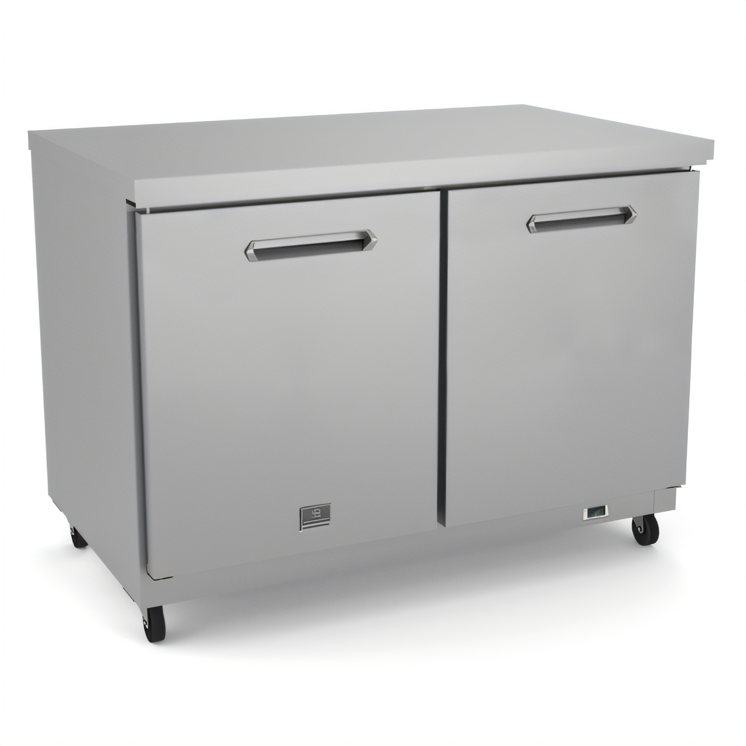 Kelvinator Commercial 48" undercounter freezer: 12 cu ft, stainless worktop, digital temp control, R290, auto-defrost, heavy-duty casters.