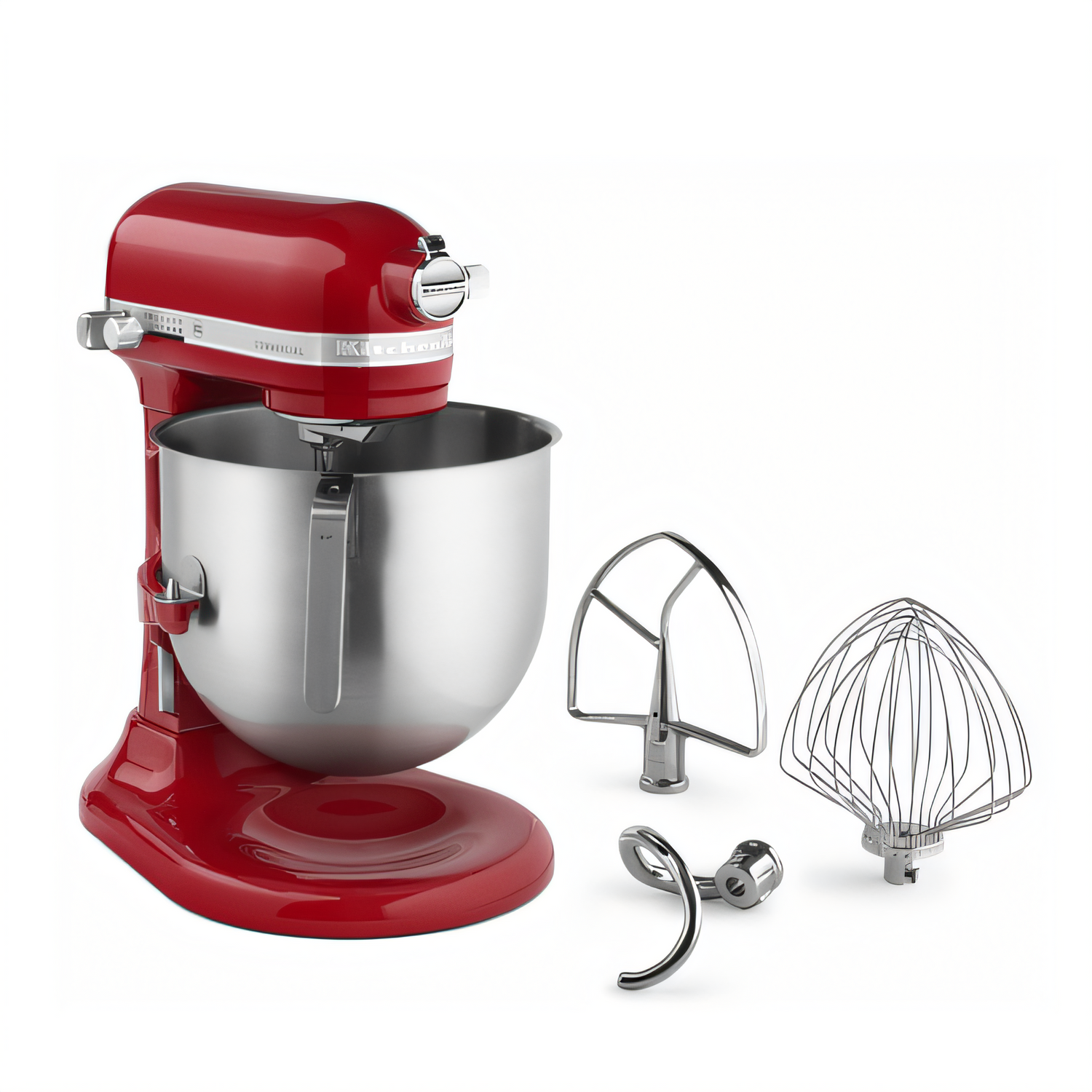 KitchenAid® Commercial Stand Mixer, countertop, 8 quart bowl with lift, PowerCore® technology, commercial attachment power hub, ASF control panel, stainless steel bowl, dough hook, flat beater, and wire whip, speed control protection, empire red finish, 500 watts, 1.3 HP, 120v/60/1-ph, 4' cord, cULus, NSF