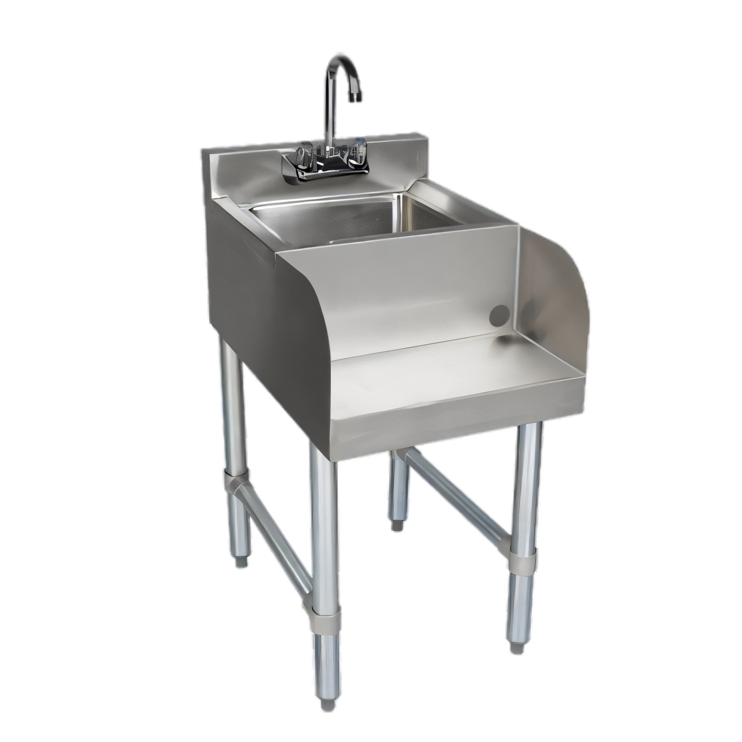 Blender Station, free standing, 16-1/2"W x 22-3/4"D x 33"H, with 12" wide x 10" front-to-back x 6" deep dump sink, faucet & drain basket included, 18 gauge stainless steel top, galvanized legs & adjustable cross bracing, ETL-Sanitation