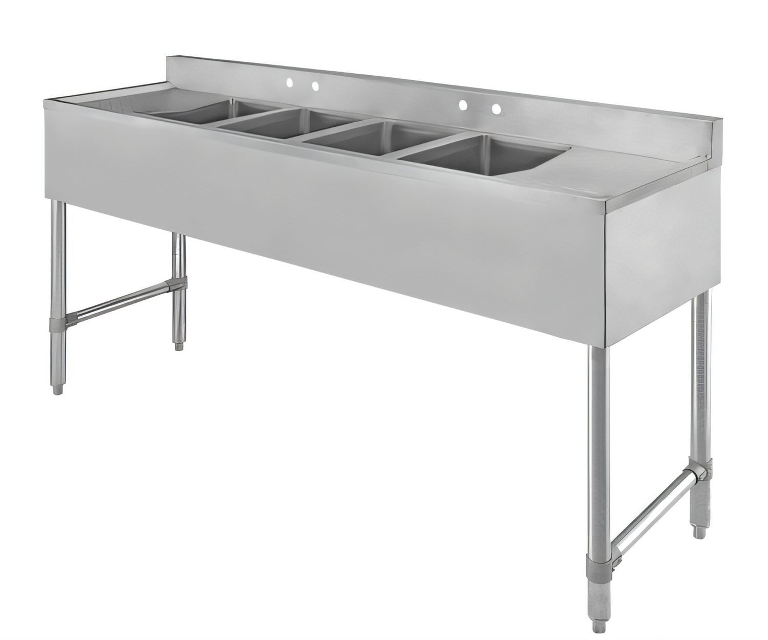 - Four 10" W x 14" front-to-back x 10" deep compartments keep washing, rinsing, sanitizing, and prep tasks separate.