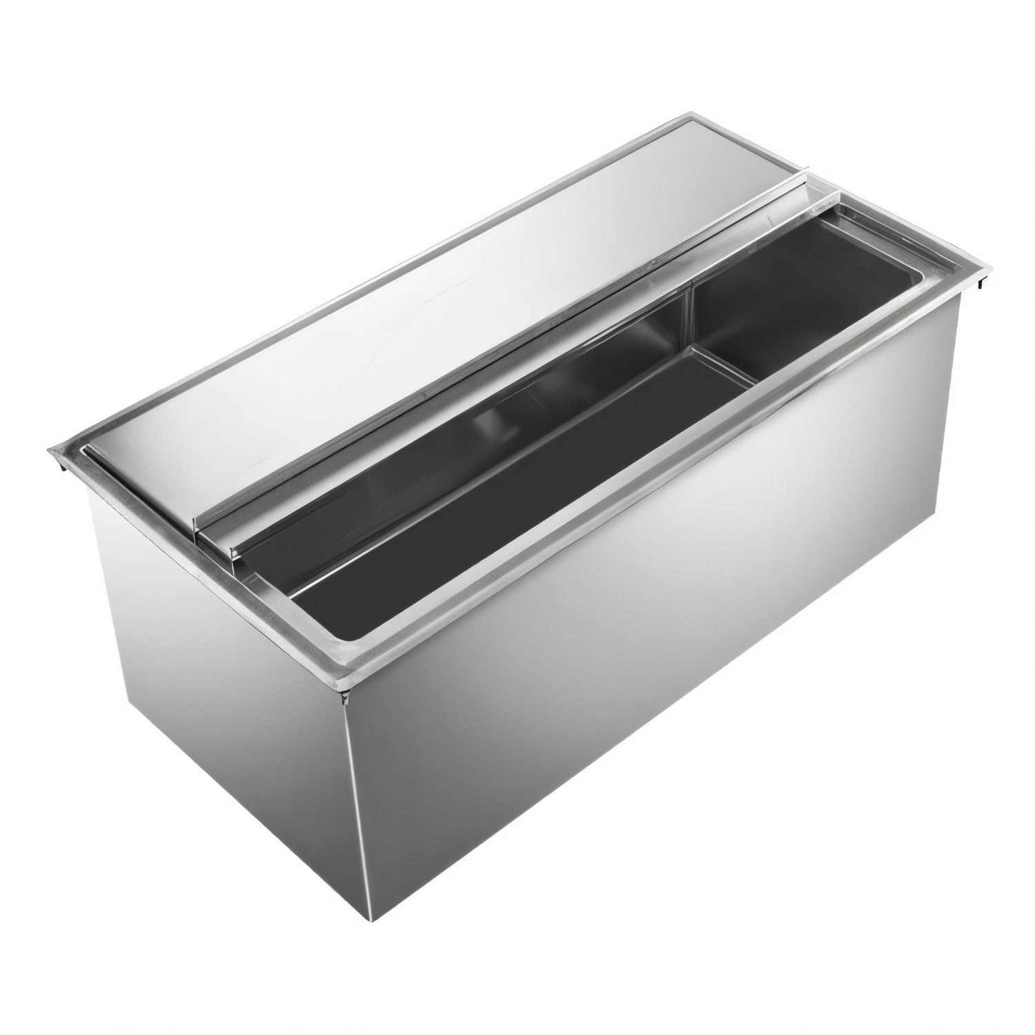 - Generous 15" × 32" × 12" deep bowl holds plenty of ice for peak service hours.