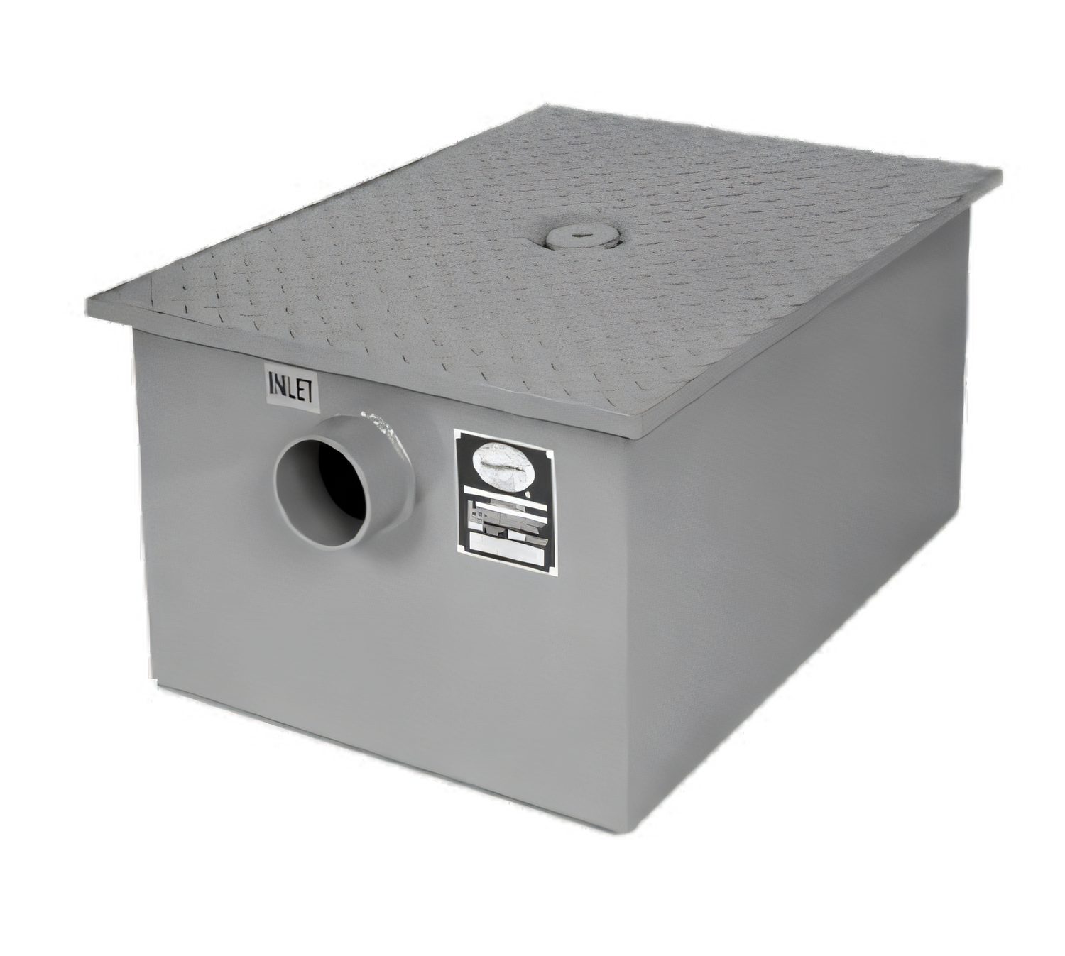 Grease Interceptor, 15 gallons per minute flow rate, 30 lb. grease capacity, 3-1/2" inlet & outlet, fabricated steel with epoxy coating, PDI certified