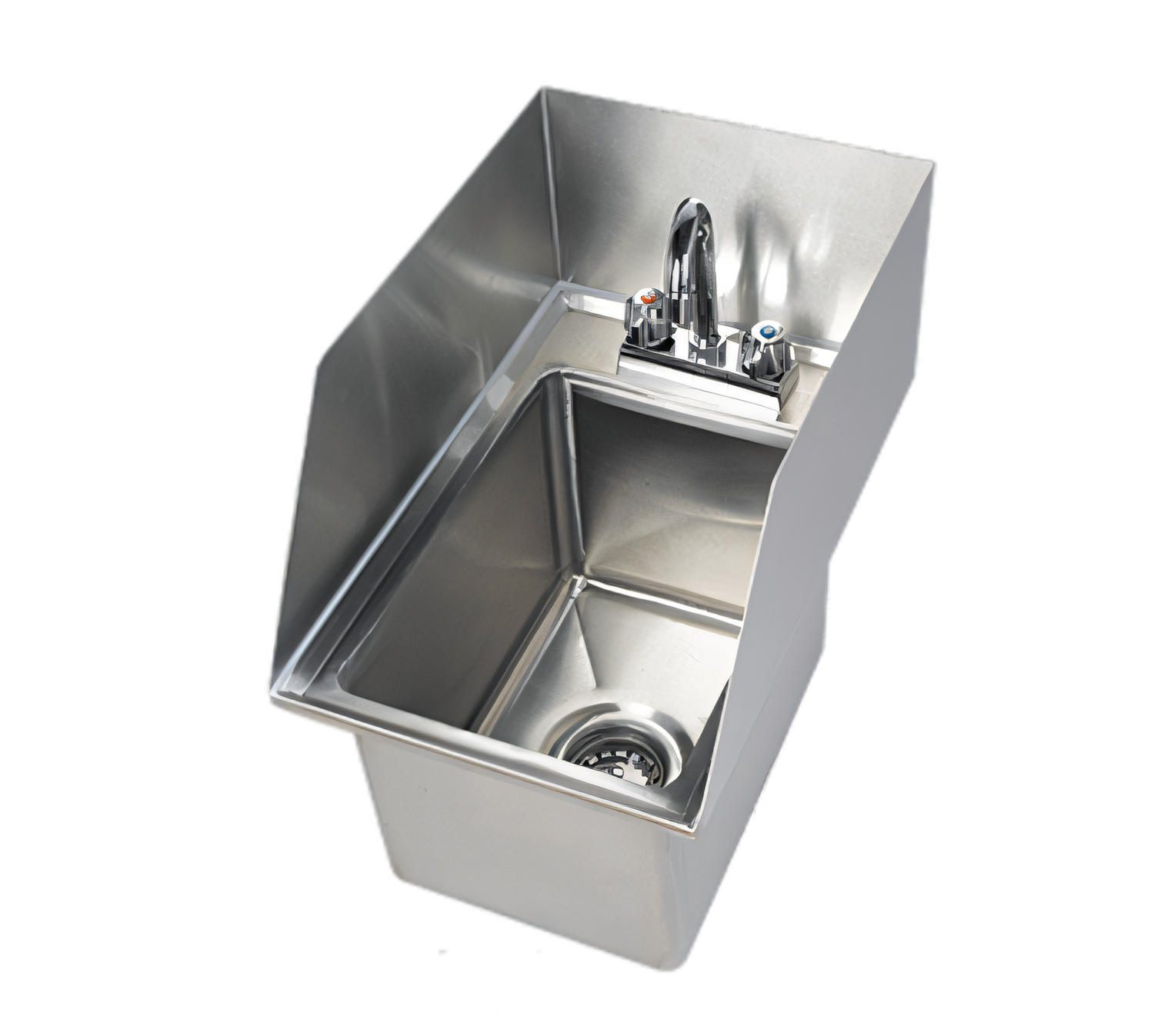 Drop-In Sink, one compartment, 10" wide x 14" front-to-back x 10" deep bowl, with splash guard, 18 gauge stainless steel, includes faucet & 3-1/2" drain basket