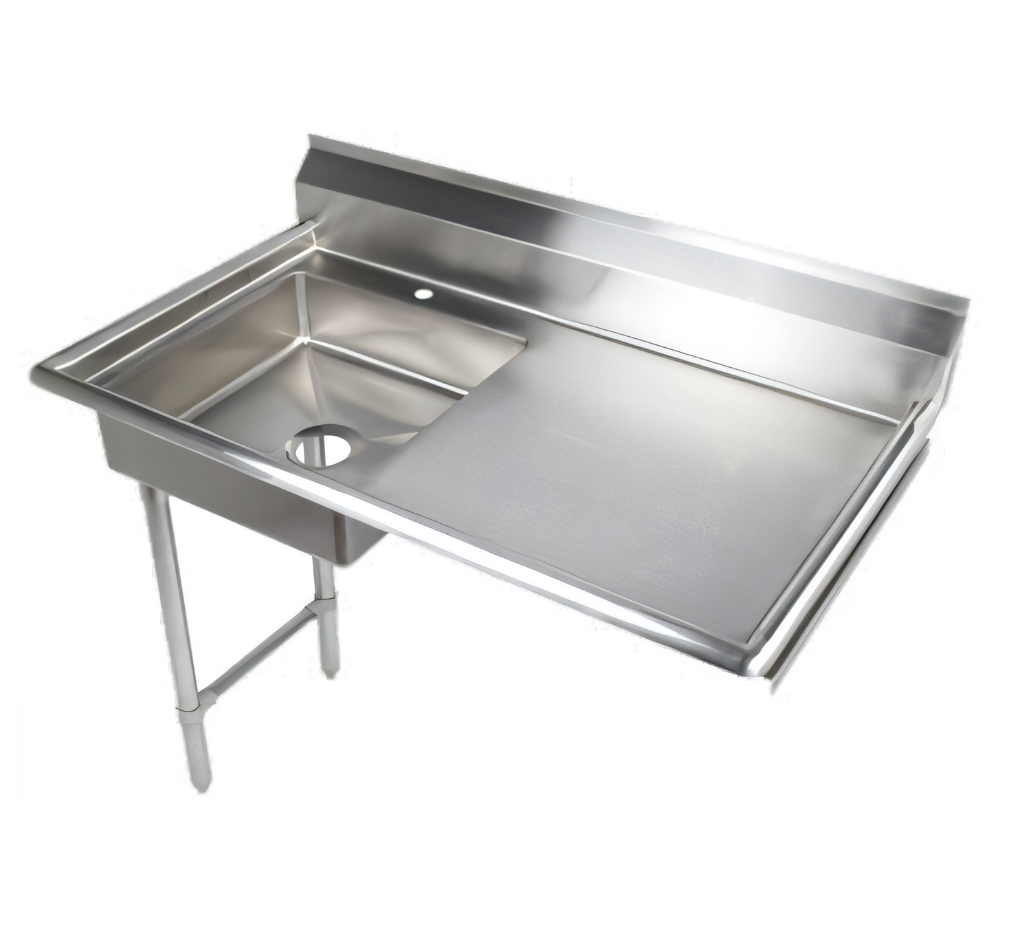 Dish Table, undercounter, 48"W x 28"D, 16/304 stainless steel construction, 24" right drainboard, 20" x 20" pre-rinse sink on left, stainless steel legs, ETL-Sanitation