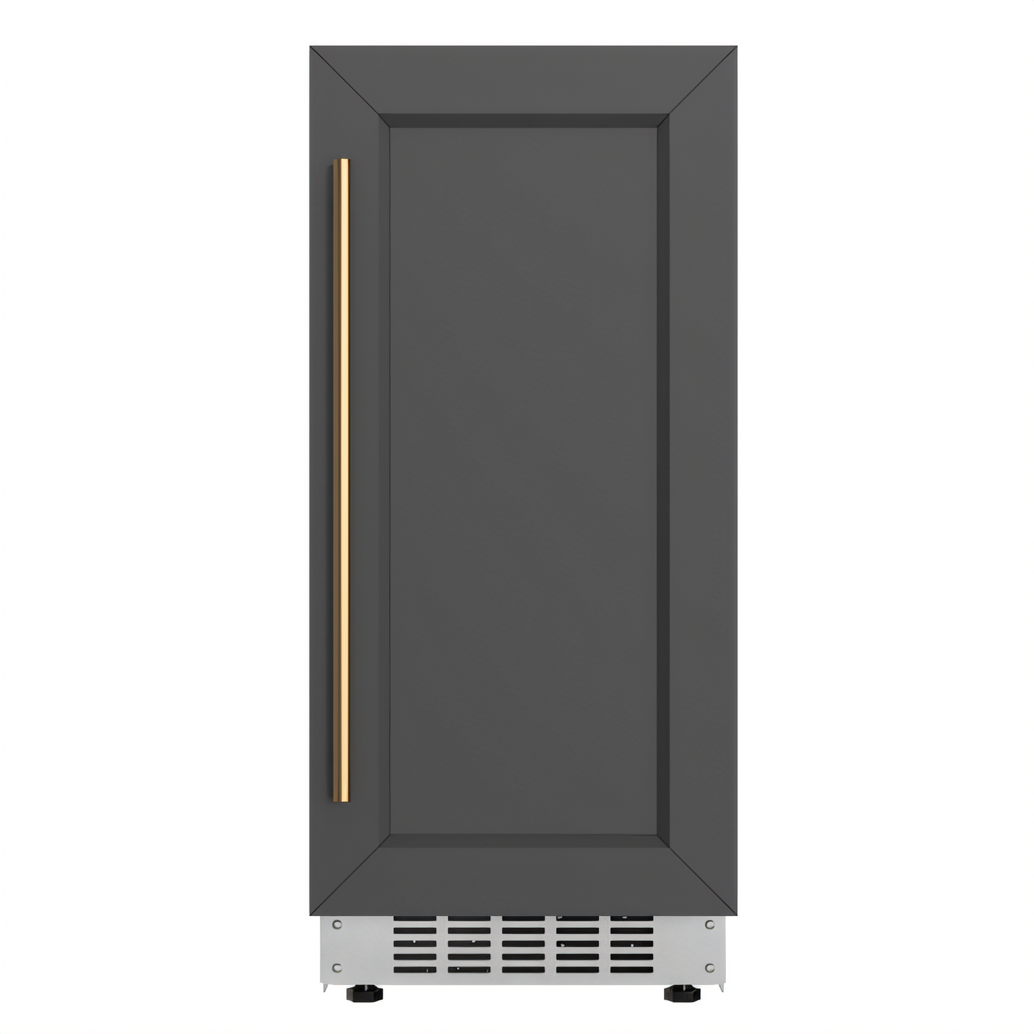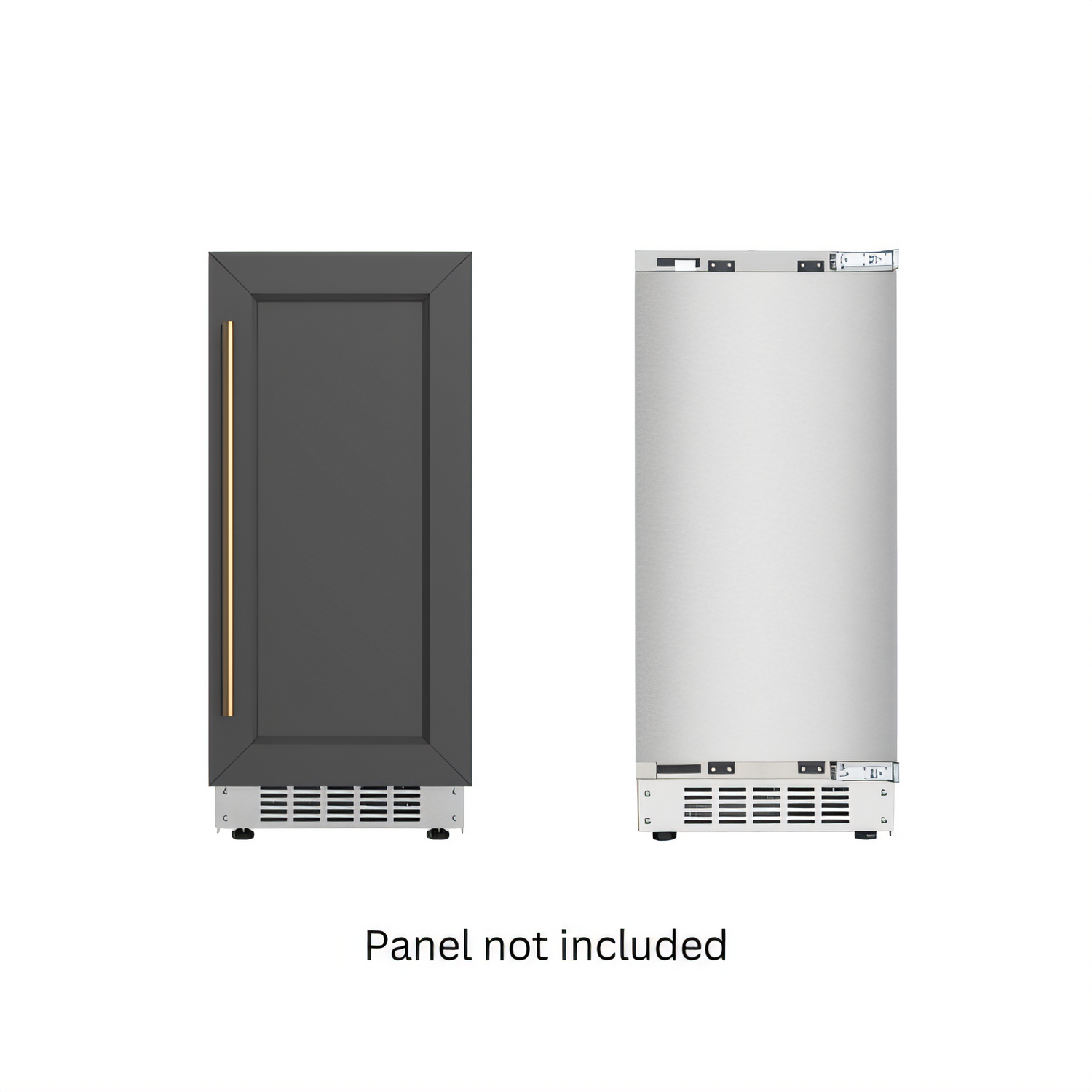 Residential Panel Ready Ice Maker, 14.80"W x 22.60"D x 34.10"H, crystal clear cubes, self contain refrigeration, digital control and display with touch pad, on/off power switch, self closing door, 57lbs daily production, 15" reserve, cleaning alarm, ETL Listed, ETL-Sanitation, Shipping Dimension (19.9" W x 24.8" D x 39.8" H)