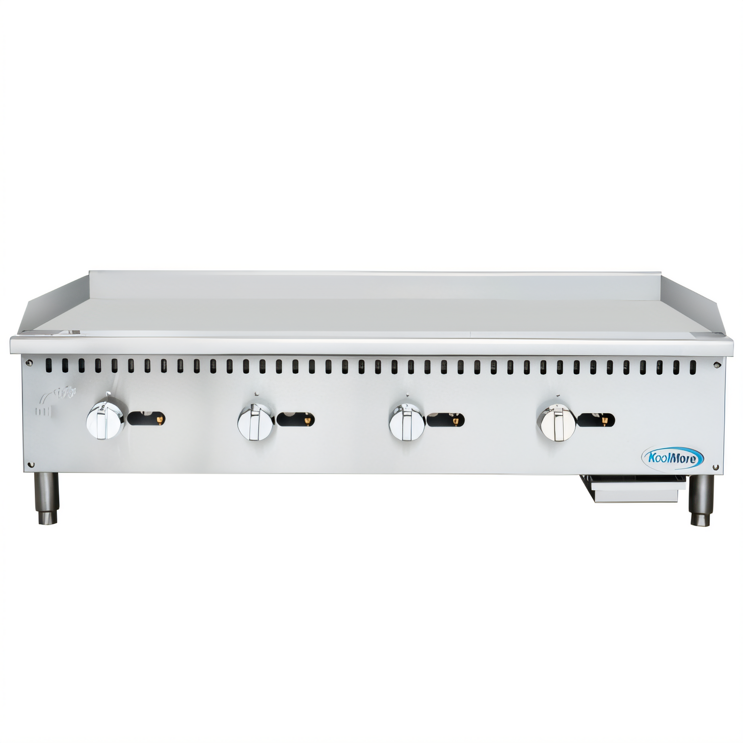 Koolmore KM-GG4-48M 48" commercial stainless gas griddle, 4 burners, 120k BTU, manual controls, ETL & ETL-Sanitation certified, drip tray.