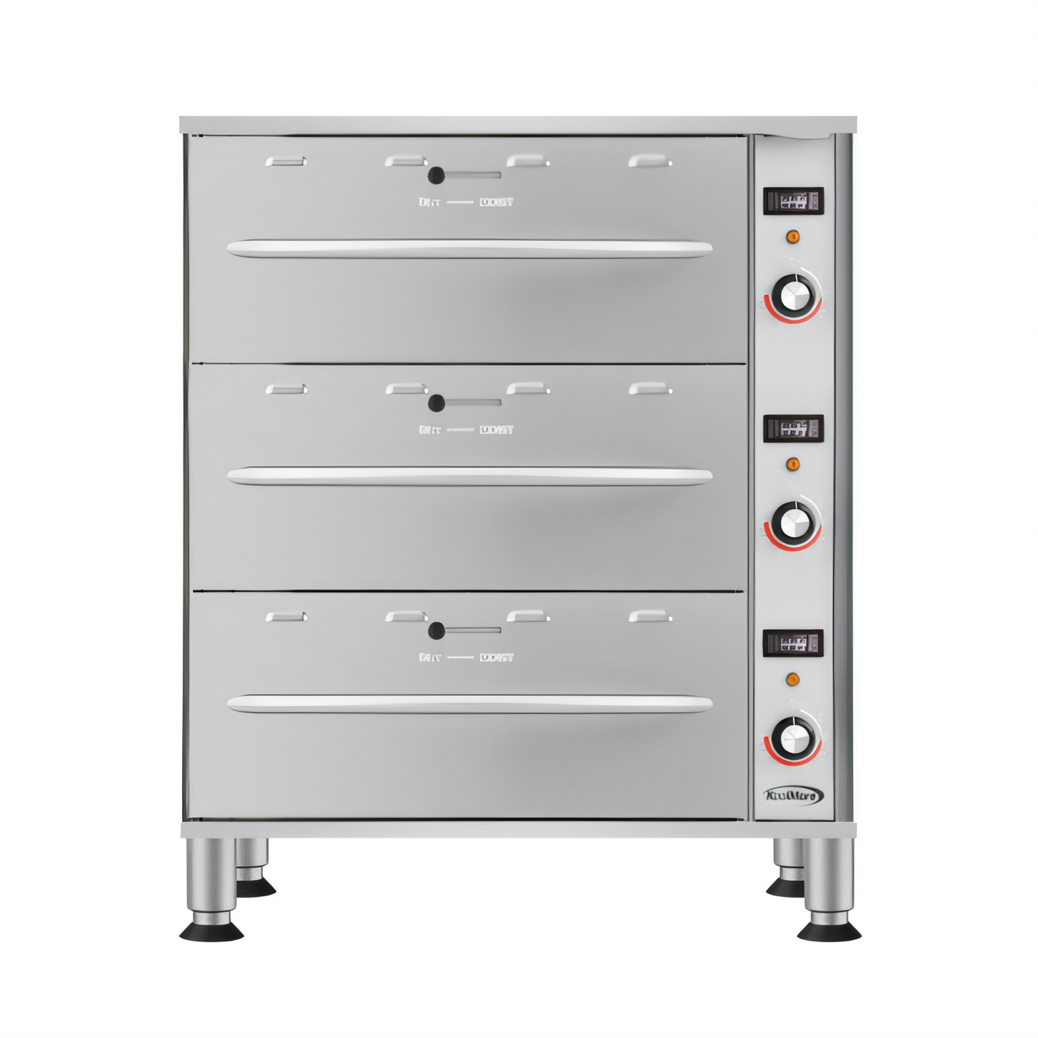 KoolMore Commercial Warming Drawer, triple drawer, 27-3/4"W x 22-4/5"D x 33-2/3"H, precise temperature control, temperatures from 80°F to 220°F, adjustable Legs, stainless-steel construction, 1.35 kW, 120v, NEMA 5-15P, UL, NSF, Shipping Dimension (24" W x 29.53" D x 16.33" H)
