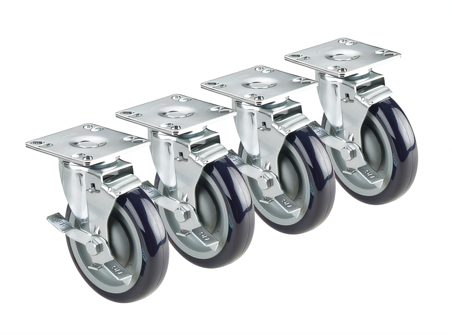 Casters, 4" with brakes, (set of 4), plate, raises unit 5"