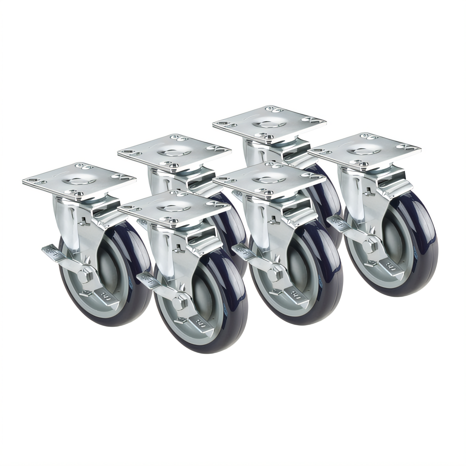 Casters, 4" with brakes, (set of 6), plate, raises unit 5"
