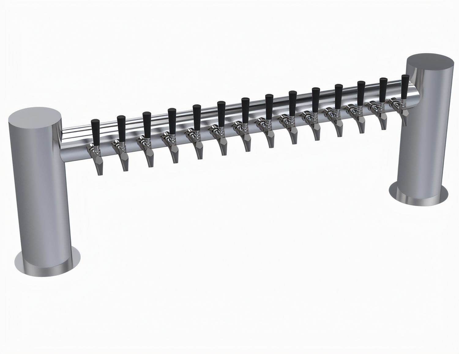 Brushed stainless steel | Faucets & tap handles sold separatelyEngineered for high-volume draft programs, the Krowne Max-H beer tower delivers ice-cold pours from the first glass to the last. With fourteen faucet ports and an efficient glycol cooling loop, this 59 inch tower is ready to showcase a wide variety of beers, ciders, wines, or cocktails while keeping every ounce at the perfect serving temperature.