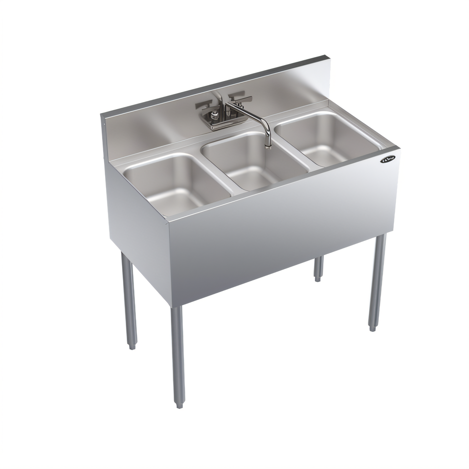 Model KR19-33C | SKU 5025Compact in footprint yet uncompromising in build quality, the Krowne Royal Series three-compartment sink delivers the speed, sanitation and durability busy bars demand—all in just 36 inches of linear space.