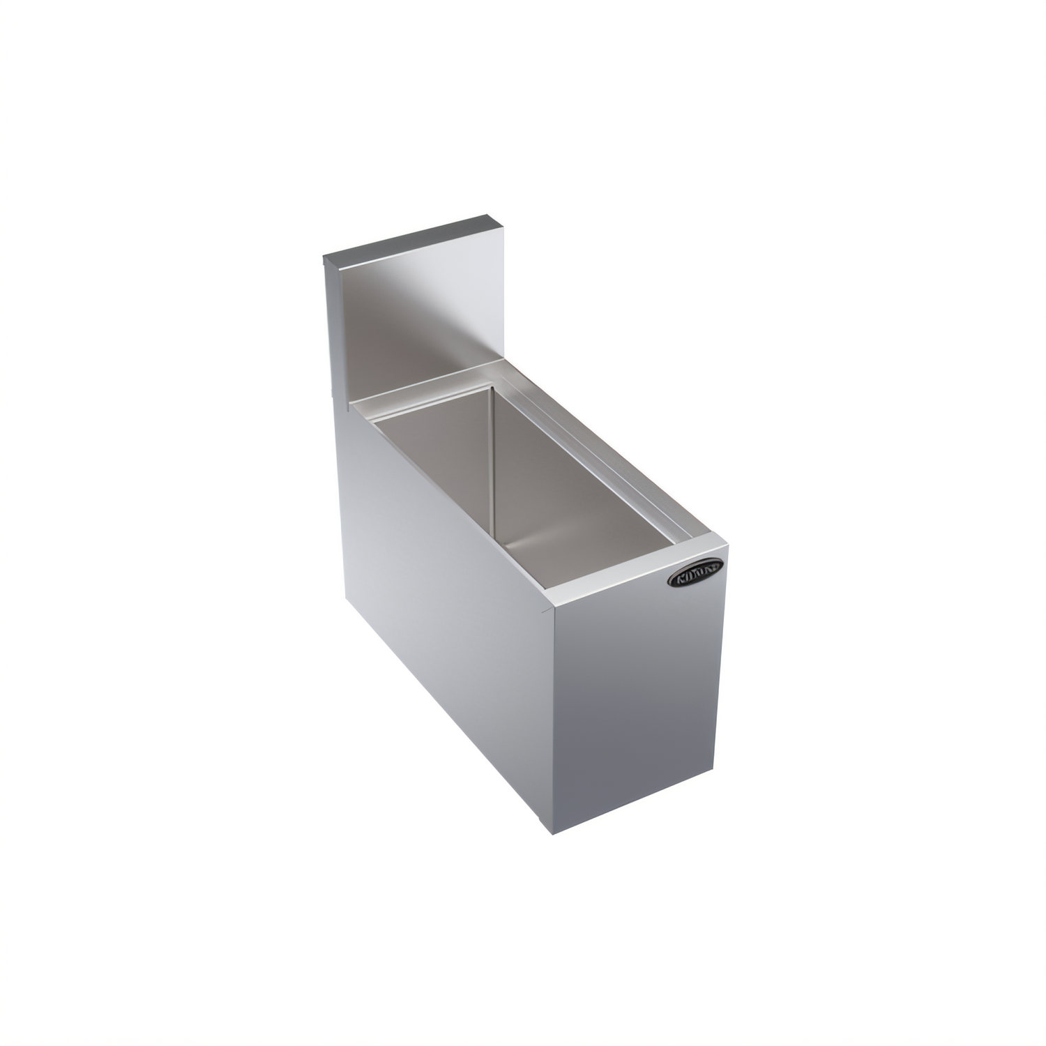Royal Series Underbar Bottle Storage/Ice Bin, insulated, 8"W x 19"D, 27 lbs. ice capacity, 10" deep stainless steel bin liner, 1" drain, stainless steel top, front, & sides, galvanized steel back & bottom, NSF (Unit MUST Ship Attached to another Krowne piece)