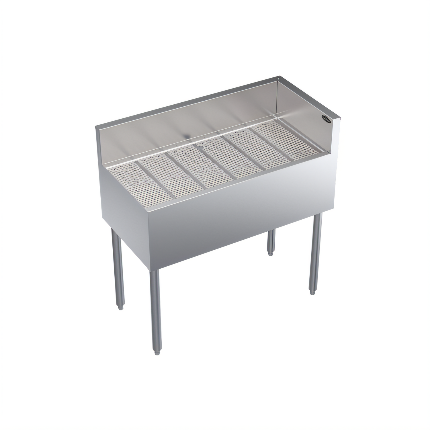 Model: KR19-C36R | NSF CertifiedEngineered for busy bar environments, this free-standing 36" Royal Series corner drainboard lets you create a seamless 90° turn while keeping glassware, pitchers and cocktails safely off the work counter. Heavy-duty stainless construction, an embossed drain surface and a true 1" IPS drain connection combine for unmatched durability and effortless clean-up shift after shift.