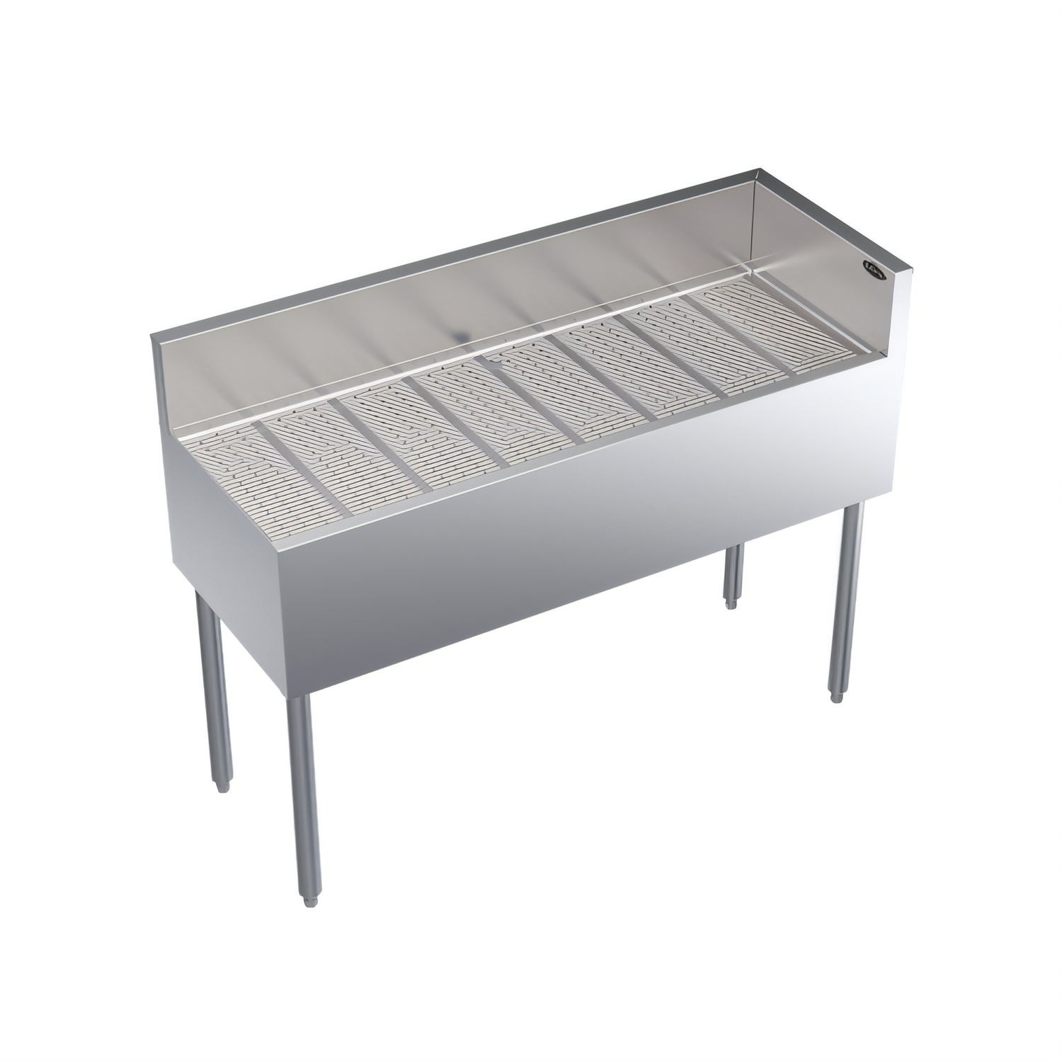 Model KR19-C48R | 19" Deep Free-Standing Underbar DrainboardMaximize underbar efficiency and keep glassware moving with Krowne’s Royal Series 48" corner drainboard. Engineered for heavy everyday use, this NSF Certified unit delivers a spacious embossed work surface, rugged all-stainless construction and a convenient right-hand return that transitions cleanly into the adjoining bar run.