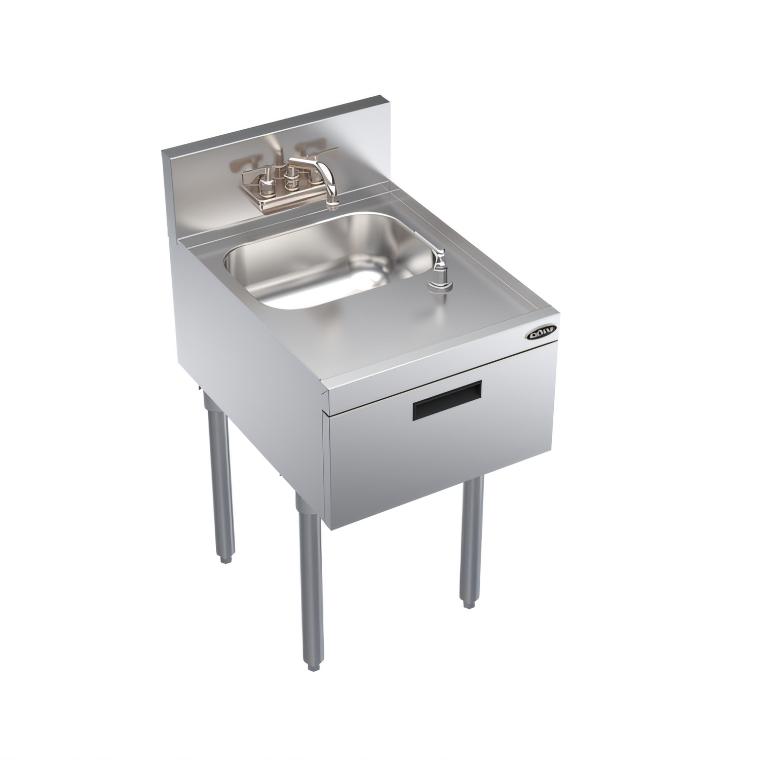 Model KR24-18ST | Free-Standing | NSF ListedEngineered for the fast-paced bar environment, this free-standing Royal Series hand sink delivers uncompromising durability, seamless underbar alignment and built-in hygiene dispensers—all in an 18" wide footprint.