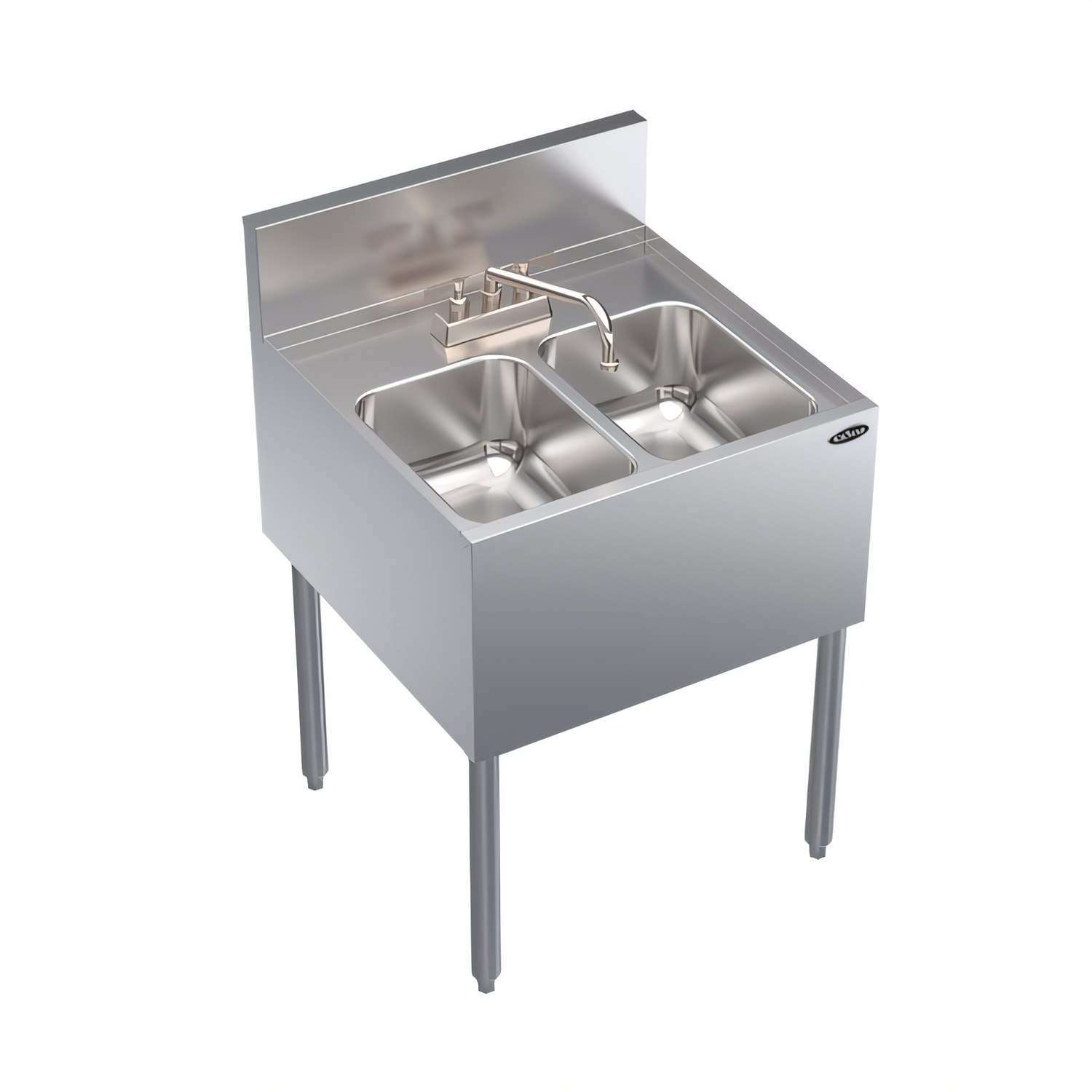 - (2) 10" W x 14" F-B x 10" D sink compartments—ideal depth for pint glasses, shakers & small wares