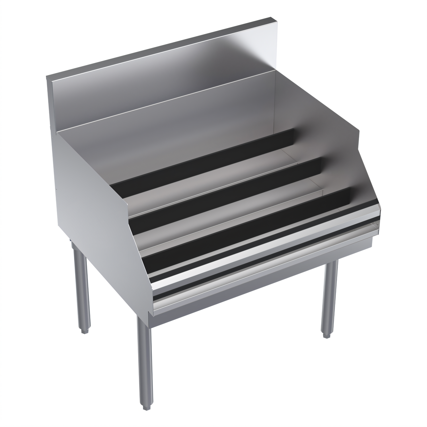 Freestanding underbar unit • 36-bottle capacity • NSF CertifiedGive bartenders faster access to top-selling spirits and keep your backbar looking sharp with the Krowne Royal Series 4-Step Liquor Display. Engineered for heavy nightly use, this 30" wide unit delivers rock-solid stainless steel construction, quiet performance, and the perfect 24" depth to line up with matching Royal Series speed rails and ice bins.