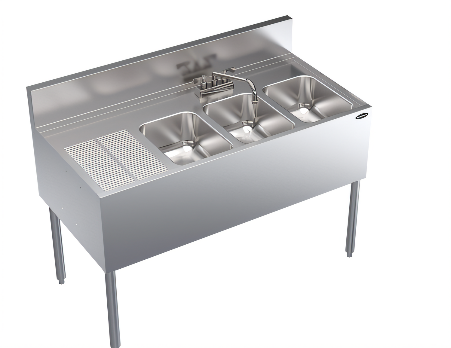 Krowne Royal Series 48" x 24" Three-Compartment Underbar Sink – Left Drainboard