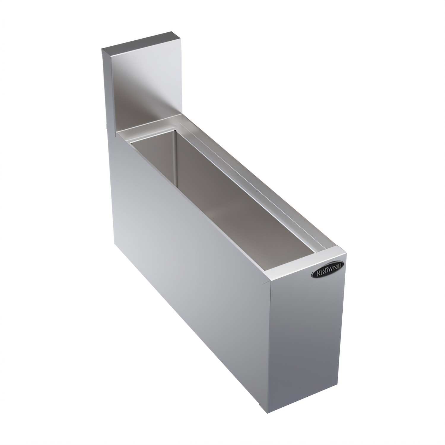 Royal Series Underbar Bottle Storage/Ice Bin, insulated, 6"W x 24"D, holds (4) bottles, 24-lb ice capacity, 10" deep stainless steel bin liner, 1" drain, stainless steel top, front, & sides, galvanized steel back & bottom , NSF (Unit MUST Ship Attached to another Krowne piece