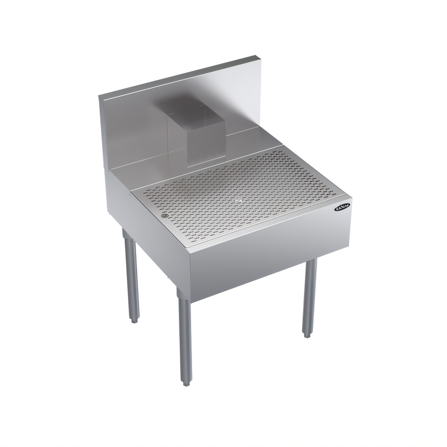 Royal Series Underbar Beer Drainer, 24"W x 24"D, 26" working height, tubing chase at rear, removable perforated insert, stainless steel top, front, & sides, galvanized back & bottom, stainless steel legs with adjustable thermoplastic bullet feet, NSF