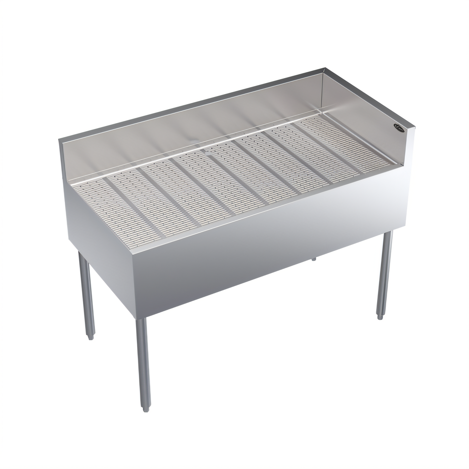 Model KR24-C48L | Free-Standing Underbar DrainboardAdd a rugged, professional-grade drainboard to the corner of your bar line without sacrificing valuable workspace. Built from 100 % stainless steel and reinforced every 6", this Royal Series unit delivers the durability, sanitation and ergonomic performance bartenders demand—all while meeting NSF/ANSI Standard 2.