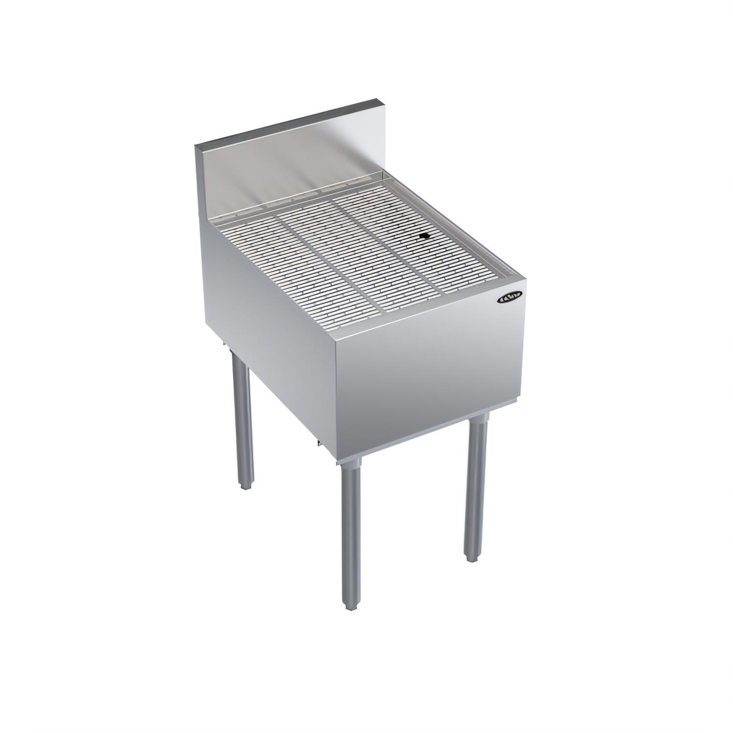 Royal Series Underbar Drainboard, free standing, 18"W x 24"D, embossed top with 1" drain, stainless steel top, front, & sides, stainless steel legs with adjustable thermoplastic bullet feet, NSF