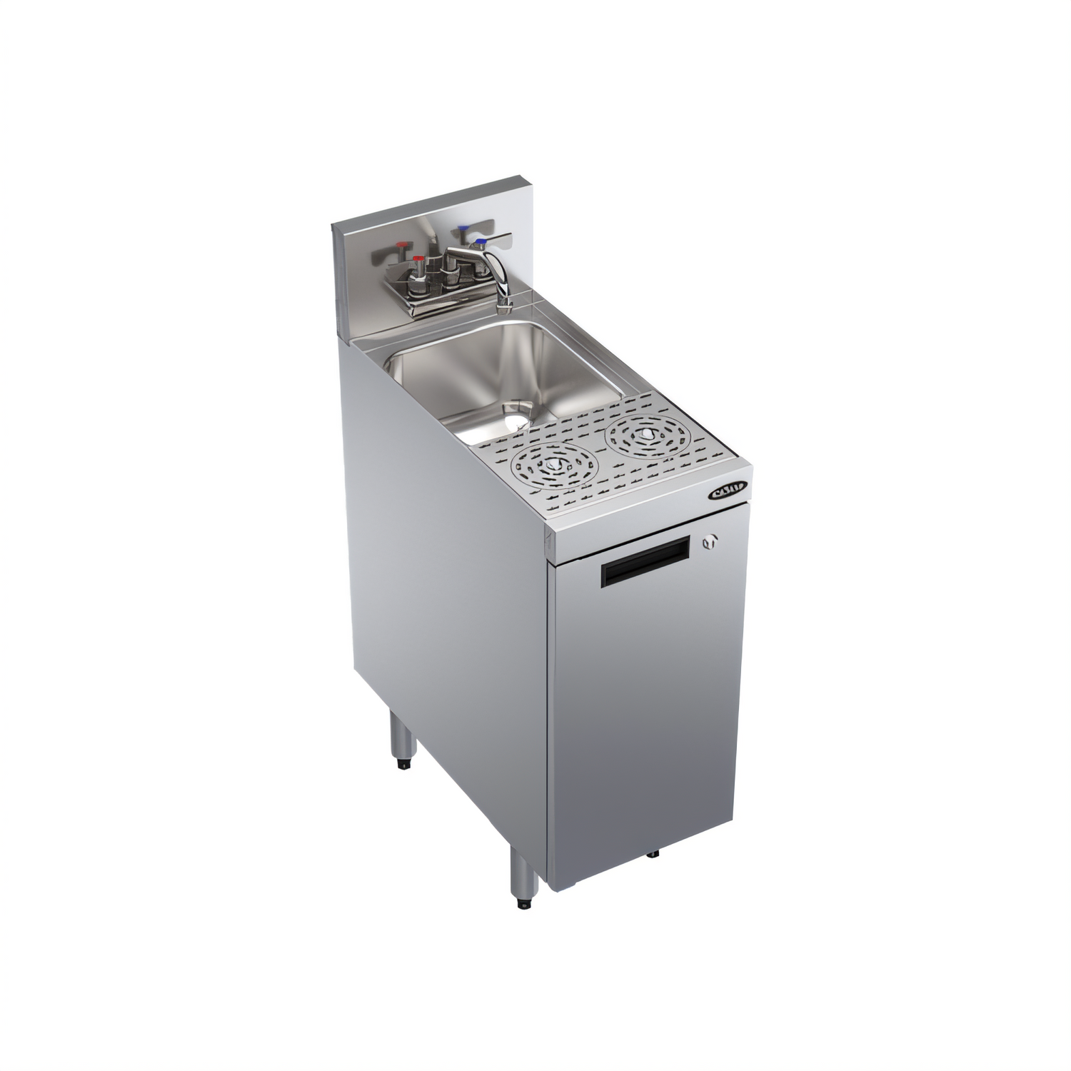 Model KR24-MD12-C | NSF ListedGive your bartenders every advantage in a slim 12-inch footprint. The Krowne KR24-MD12-C combines a dump sink, dual high-performance speed rinsers and a locking cabinet base—so glassware gets cleaned, waste gets dumped, and tools stay secure, all in one heavy-duty station.