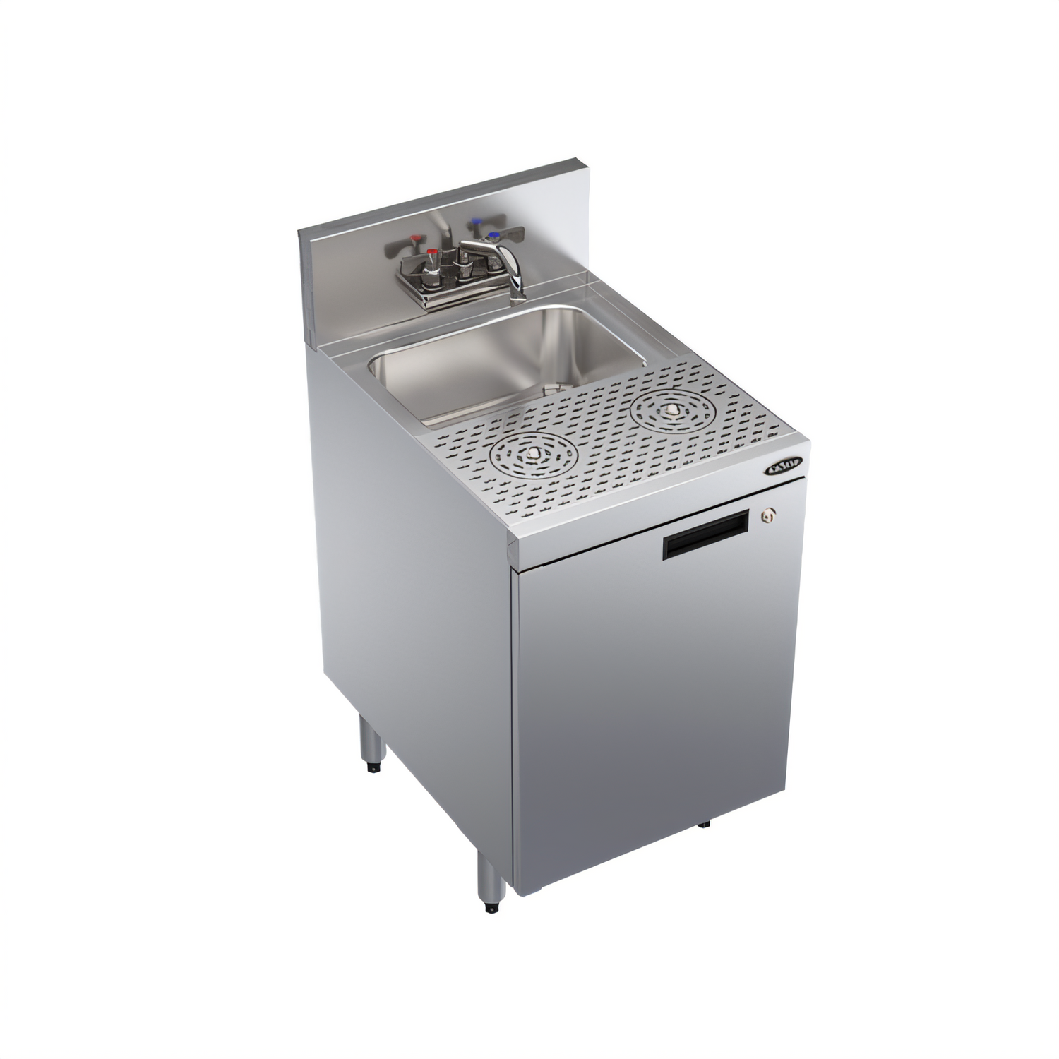 - Locking stainless-steel cabinet base keeps chemicals, towels and bar tools secure & out of sight.