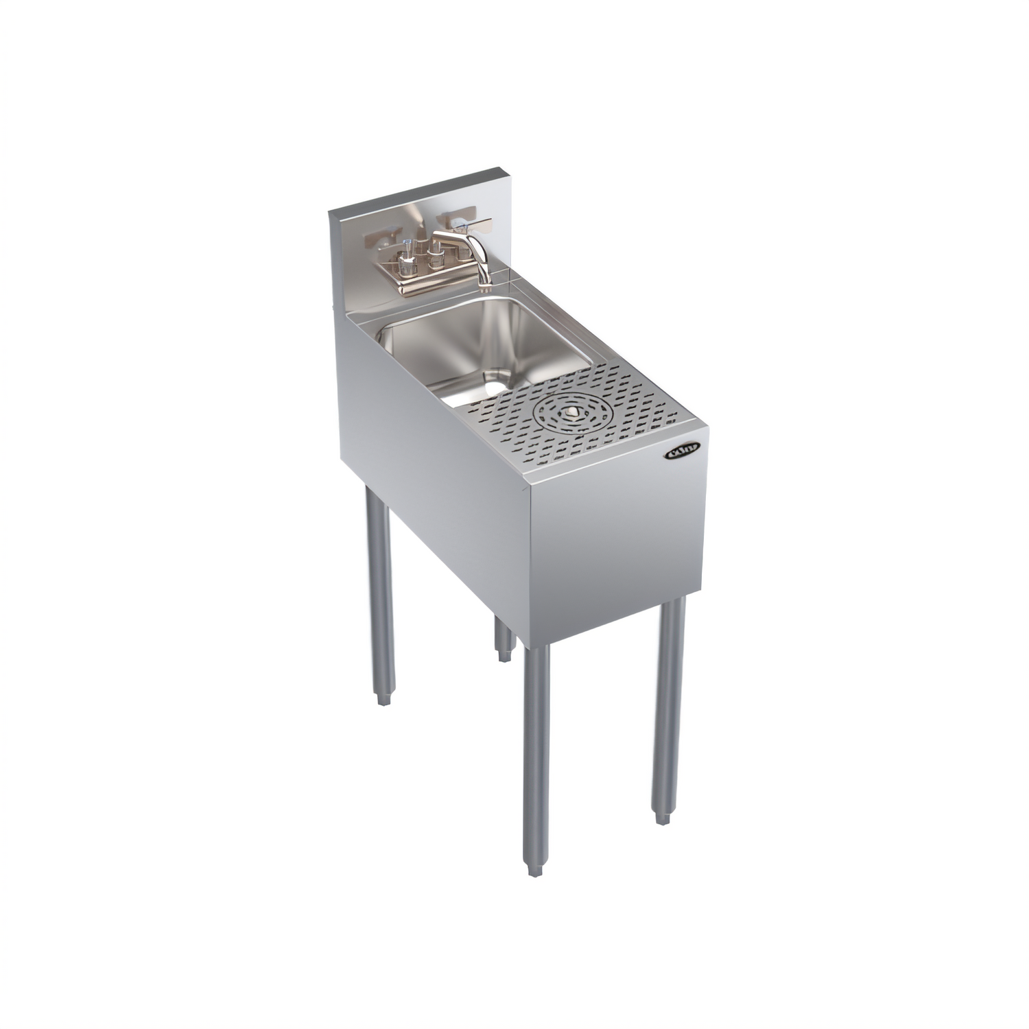 Model KR24-MS12 • Sink + Glass Rinser Combination StationPack maximum bar efficiency into a minimal 12-inch footprint. The Royal Series KR24-MS12 delivers a deep sink, high-performance push-down glass rinser and removable perforated drainboard—everything you need to keep glassware spotless and service moving fast, all in one rugged NSF-listed workstation.