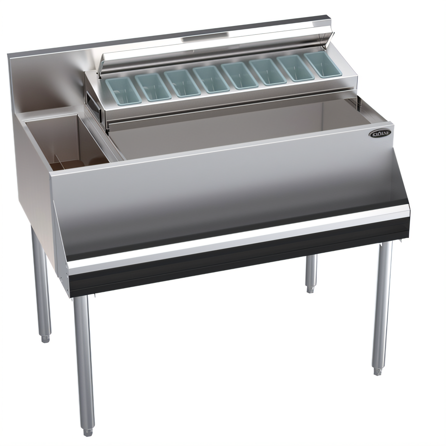 Model KR24-MS38R • Right Ice Bin • NSF & ETL SanitationElevate cocktail service with Krowne’s Royal Series Mixology Multi-Station—an all-in-one underbar powerhouse that keeps ice, spirits, elixirs and garnishes perfectly organized and within arm’s reach.