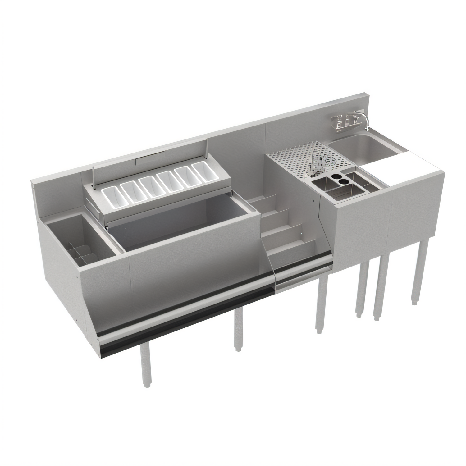 8″ Elixir Well • 24″ Ice Bin (No Cold Plate) • Liquor & Tool Caddies • Dump Sink w/ Cutting Board & CabinetEngineered for speed and efficiency, the Krowne Royal Series 68″ Workstation puts every essential bartender tool within arm’s reach. Premium stainless-steel construction, seamless integration of wet and dry modules, and NSF-listed sanitation features make it the professional choice for upscale bars, nightclubs and mixology labs alike.