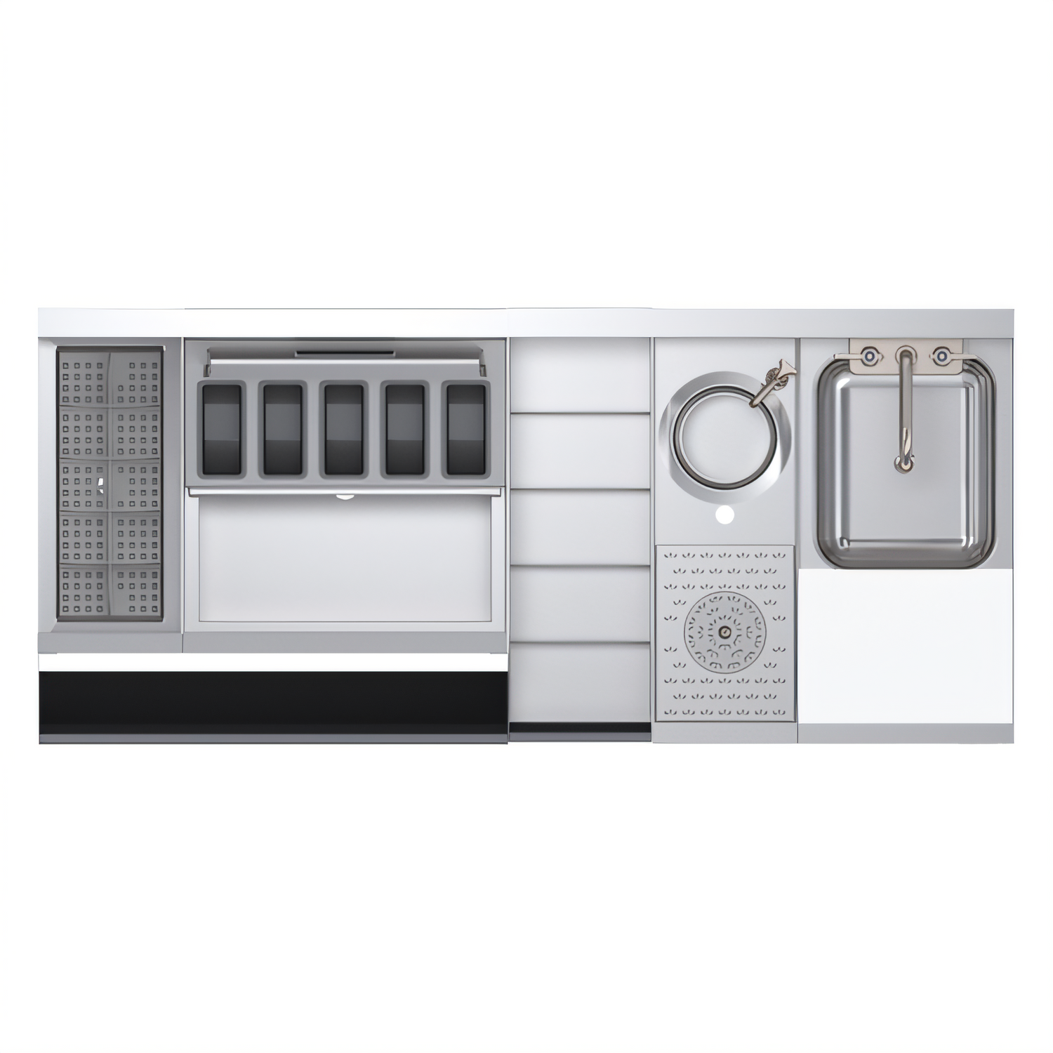 Model KR24-MX54-7 | Integrated 7-Circuit Cold PlateDesigned so bartenders never take a step, the Royal Series Zero-Step workstation puts every essential tool directly in front of the mixologist. From a high-capacity ice bin with cold plate to a built-in glass rinser, this 54" speed station keeps service fast, organized and sanitary.