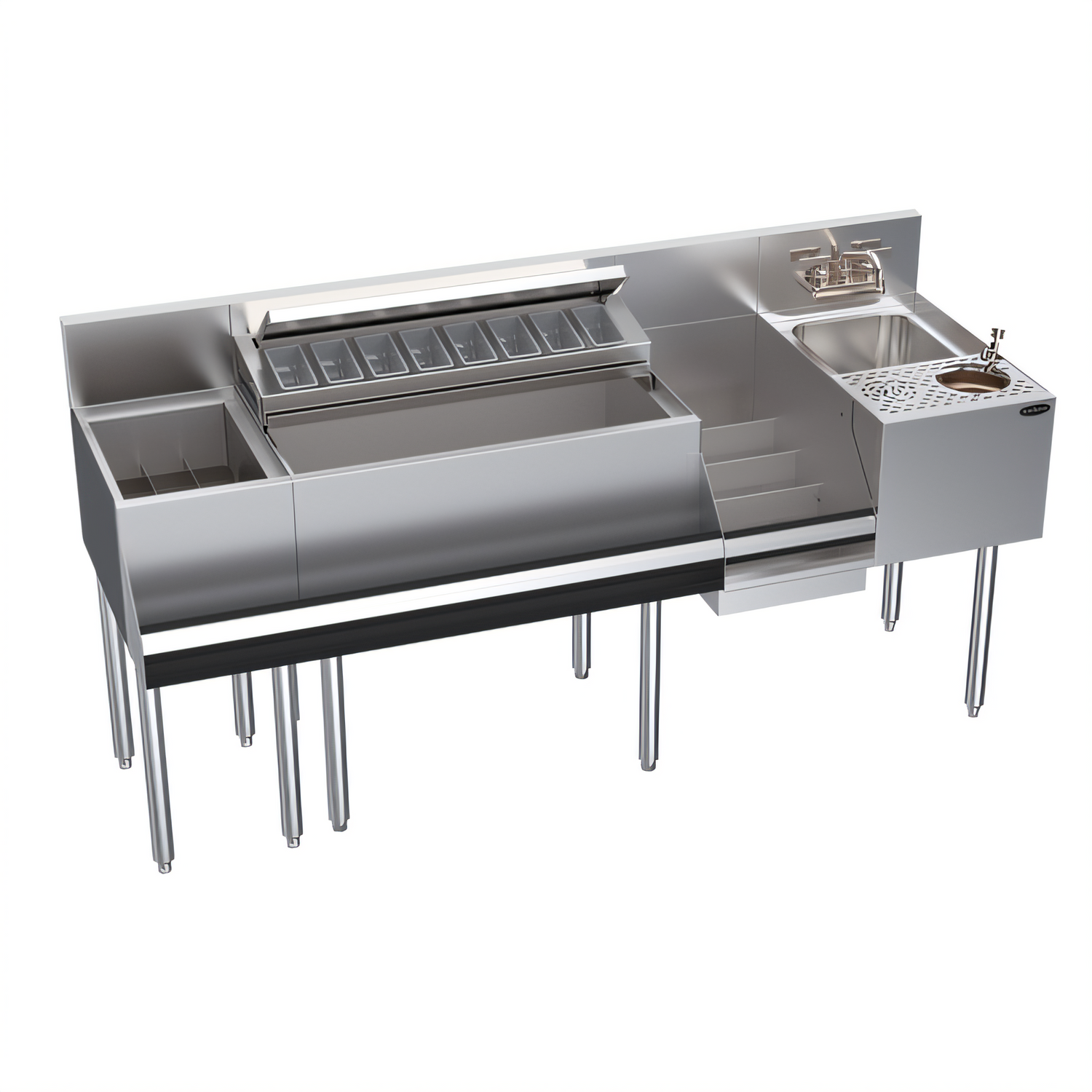 10-Circuit Cold Plate • 30″ Ice Bin • Dump Sink & Glass RinserUpgrade your service speed and workflow with Krowne’s Zero-Step workstation. This 68-inch unit brings ice, bottles, garnishes, rinsing and dumping within one effortless reach, so bartenders can craft more drinks per shift and boost your bottom line.