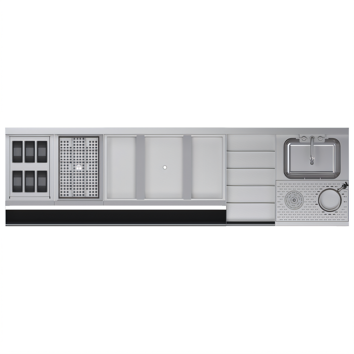Model KR24-MX84 | NSF & ETL-Sanitation ListedEngineered around the “zero-step” bartending philosophy, this 84-inch Krowne Royal Series workstation keeps ice, sinks, rinse tools, bottles and garnishes inside a single 24-inch-deep footprint—so bartenders never waste a step or drink-making momentum.